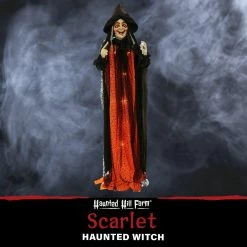 Fraser Hill Farm Haunted Hill Farm 5.42-ft. Witch Animatronic, LED Red Eyes, Battery-Operated