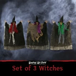 Fraser Hill Farm Haunted Hill Farm Set Of Three 1.5-ft. Hanging Witches, Multi-Color Hair, Poseable