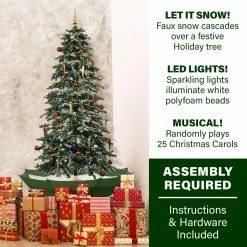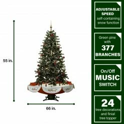 Fraser Hill Farm Let It Snow Series 67″ Snowing Musical Christmas Tree W/ Green Base And Snow