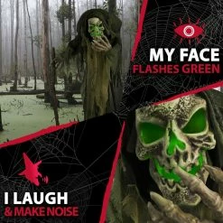 Fraser Hill Farm Life-Size Poseable Animatronic Reaper With Flashing Colorful Eyes (Frank)