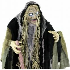 Fraser Hill Farm Life-Size Poseable Animatronic Witch With Light-up White Eyes (Voodoo)