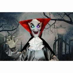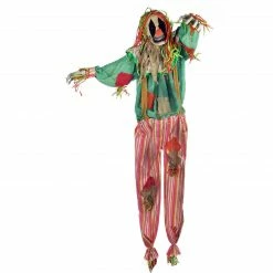Fraser Hill Farm Life-Size Poseable Animatronic Scarecrow Clown With Flashing Eyes (Burlap)