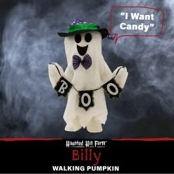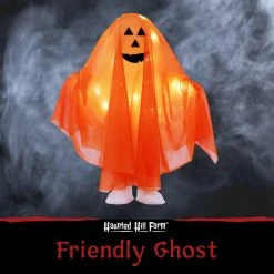 Fraser Hill Farm Haunted Hill Farm 1.3-ft. Orange Light-Up Ghost, White LED, Kid-Friendly, Battery