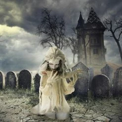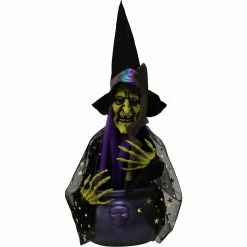 Fraser Hill Farm Haunted Hill Farm 1.6-ft. Animated Witch, Red/Green LED Eyes, Battery, Evanora