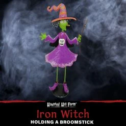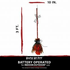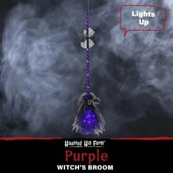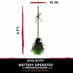 Fraser Hill Farm Haunted Hill Farm 3-Ft. Green Witch’s Broomstick W/ Green Lights, Battery