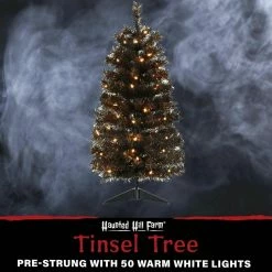 Fraser Hill Farm Haunted Hill Farm 3-Ft. Spooky Black Tinsel Tree, Warm White LED Lights