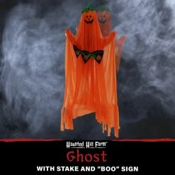 Fraser Hill Farm Haunted Hill Farm 3.3-ft. White Ghost W/ Stake/BOO Scroll, LED Multi-Color, Battery