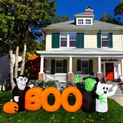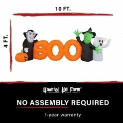 Your neighbors will be in for a fright they see your 10-ft. Inflatable Boo Sign with Lights. This pre-lit inflatable is outfitted with ten internal white LED lights and will be the centerpiece of your own personal haunted house. It’s big enough to make the neighbors notice but still works in smaller yards or walkways. It’s the perfect trick to give your trick-or-treaters a scare without giving them nightmares. The treat is how quick and easy it is to set up with included ropes and lawn stakes for secure installation. Thanks to the internal lights and fan all you need to do is unpack it, plug it in, stake it down and you’re ready for some scary fun all Fall long. Created out of durable, weather resistant polyester, you won’t need to worry about holes. Your inflatable will last year after year and scare after scare. With Haunted Hill Farm, you’ll be the scariest house on the block!