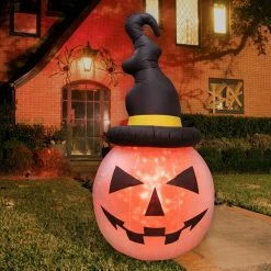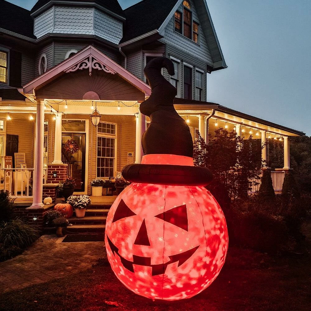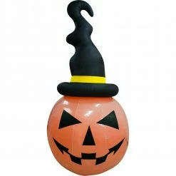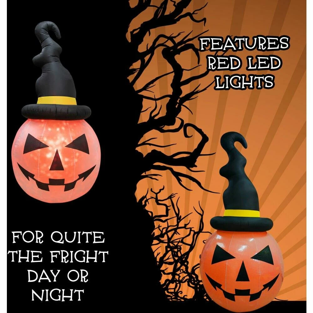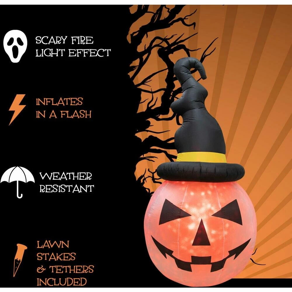 - 10-ft. Inflatable Pumpkin with Black Hat and Fire Lights