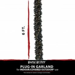 Add a little extra spook to your Halloween with this 6-ft. black tinsel garland from Haunted Hill Farm. This ghostly garland will make an eerie statement in any room it’s placed in from the moment you unbox it. Simply plug it into a standard outlet and enjoy how the black tinsel needles reflect the warm, LED lights from every angle. These lights are evenly distributed throughout the garland and provide extra light to the frightening display. This garland can be displayed on your porch, mantel, dining table, or door frame of your haunted house. Our Haunted Hill Farm tinsel garland is the final nail in the coffin for your decor this Halloween!