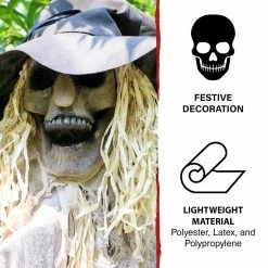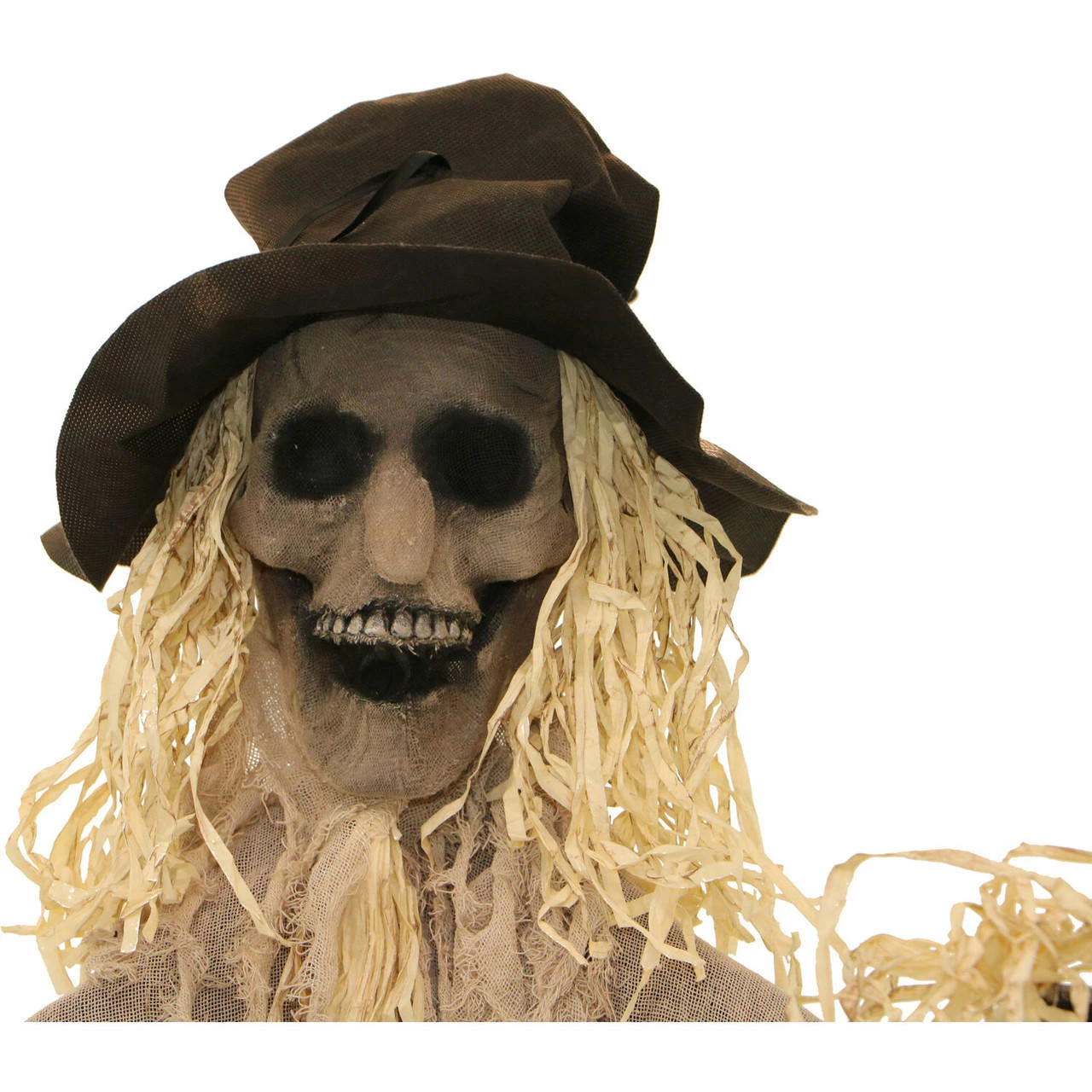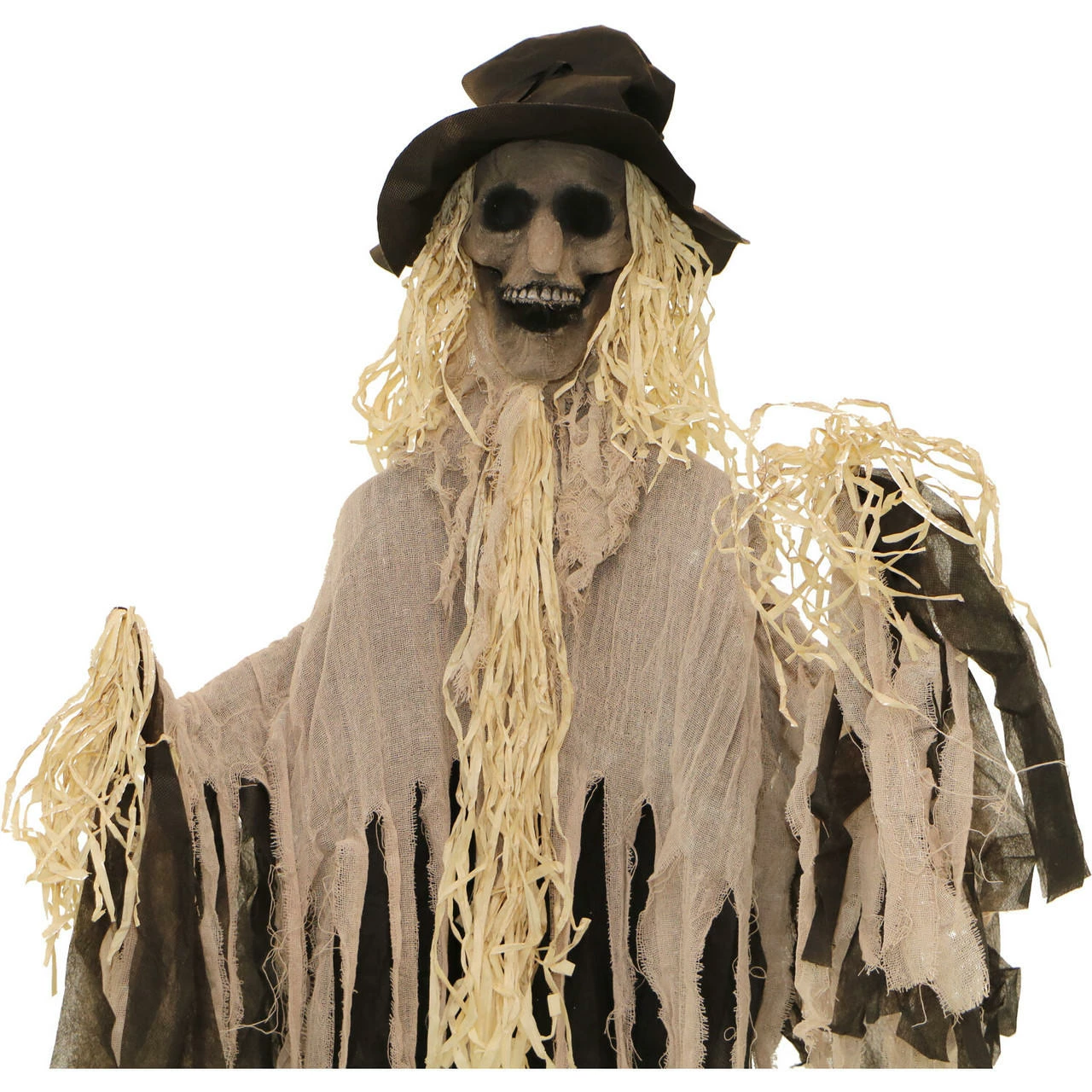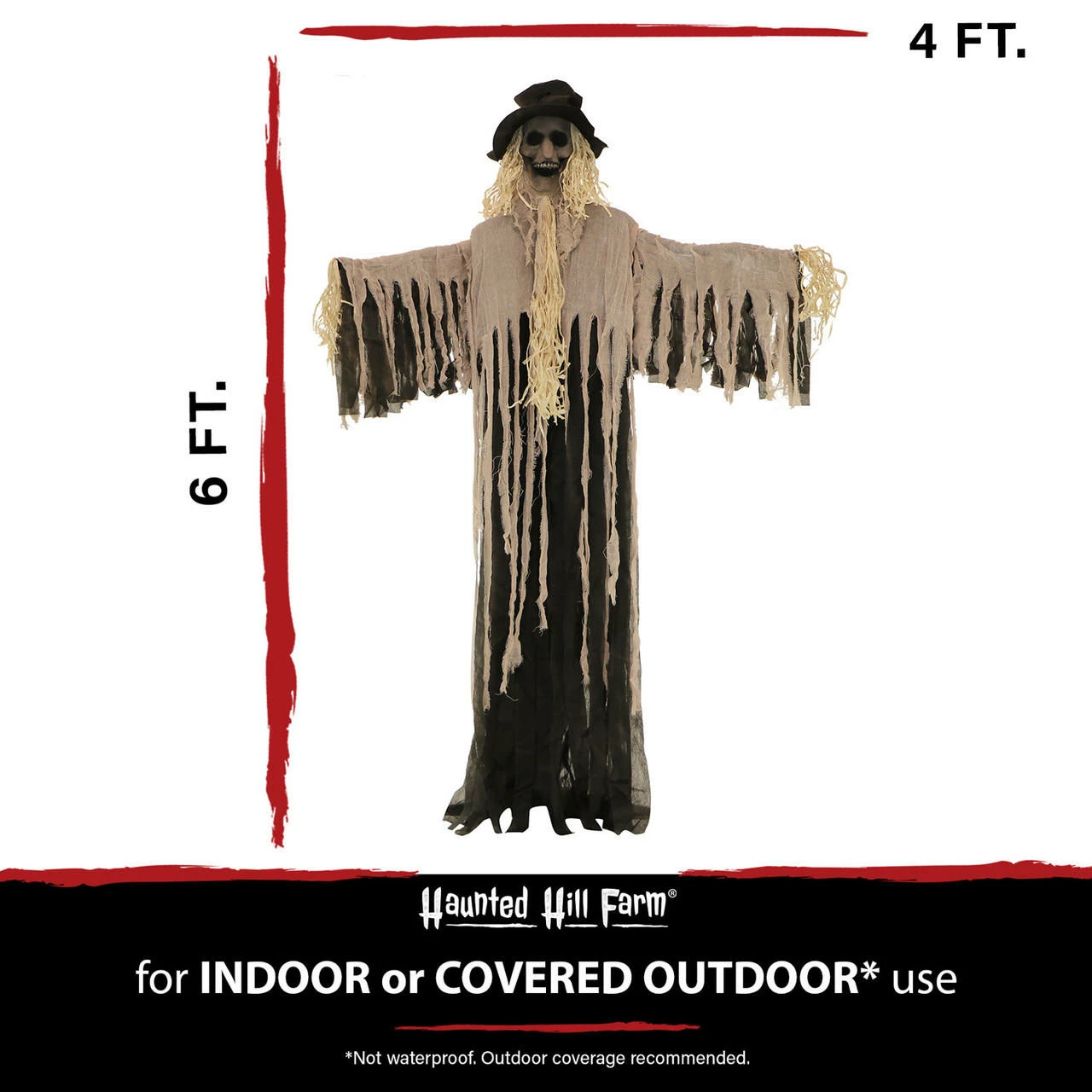 - 6-ft. standing scarecrow for indoor or covered outdoor display