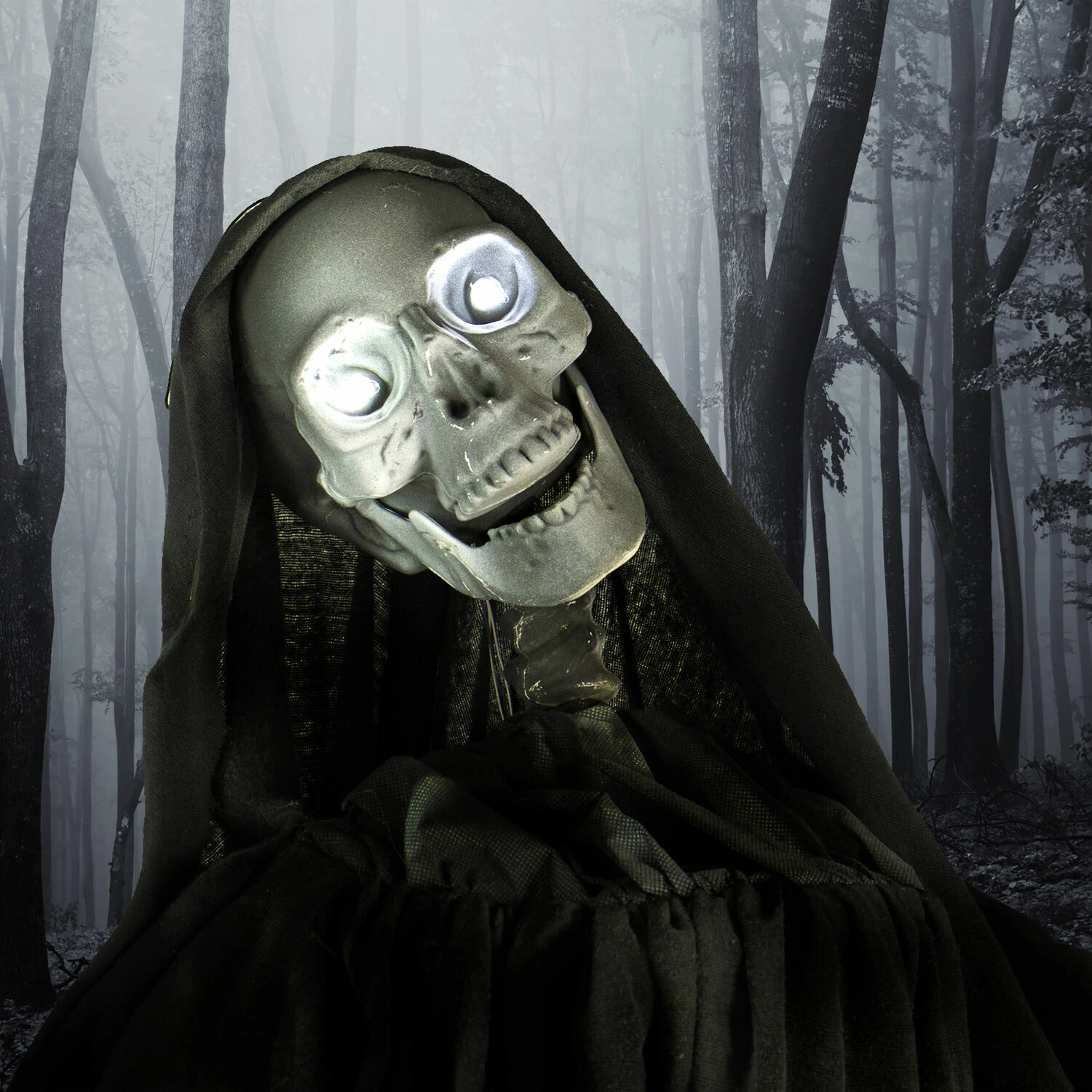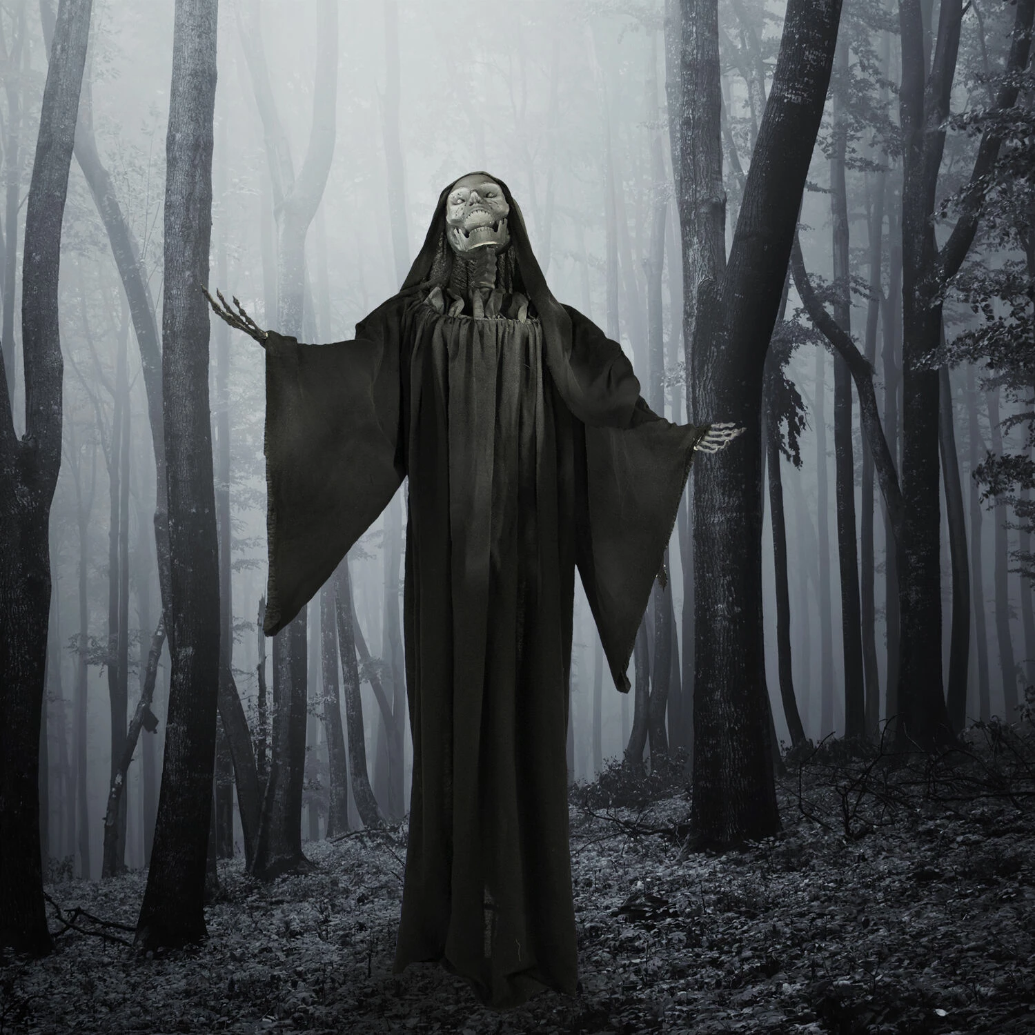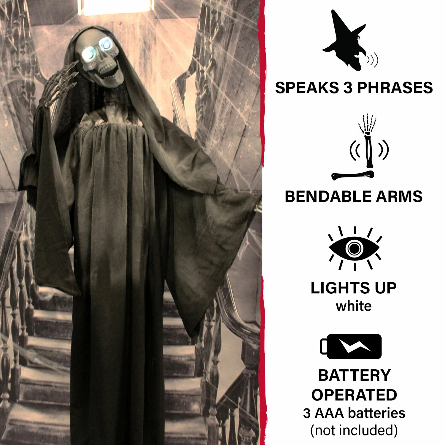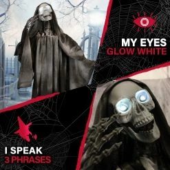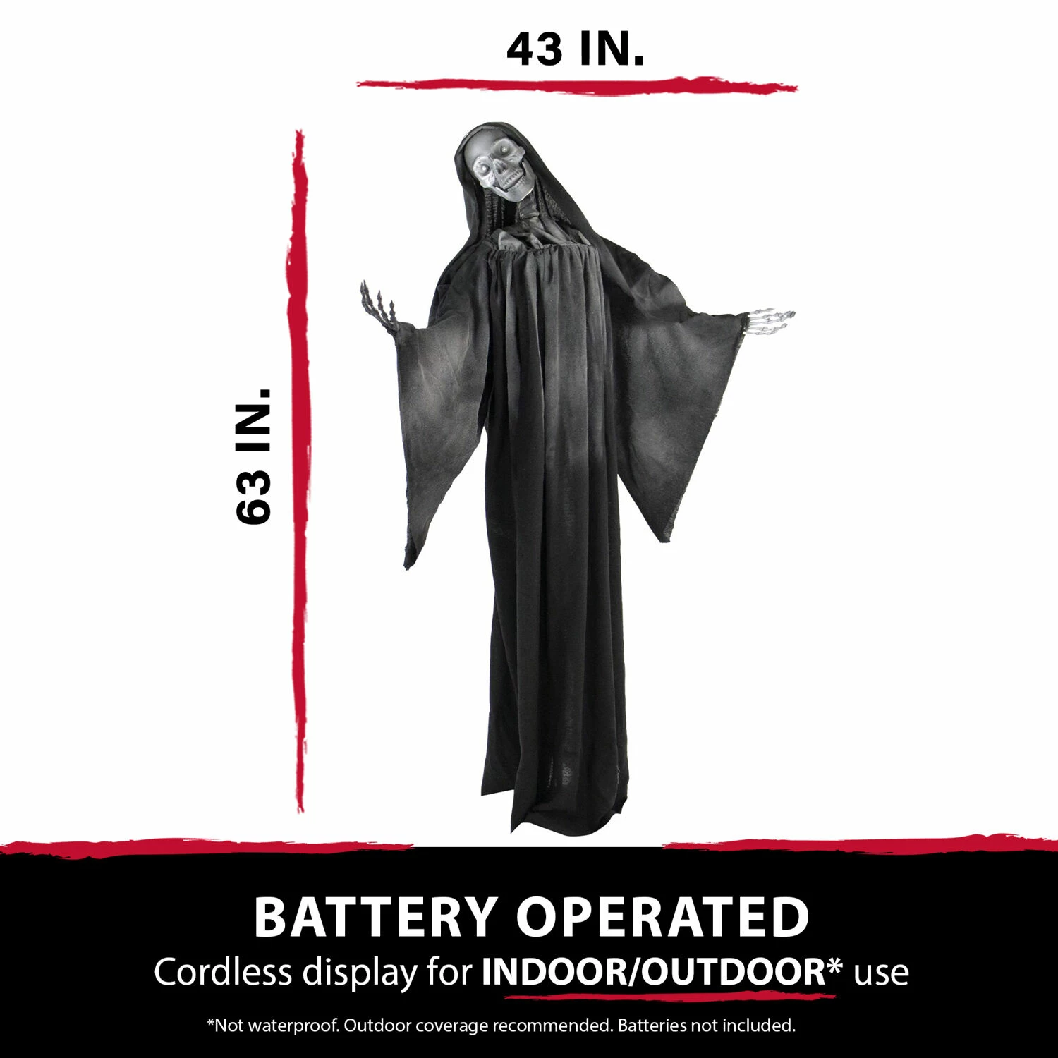 - 63-inch animatronic reaper for indoor and covered outdoor display