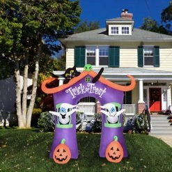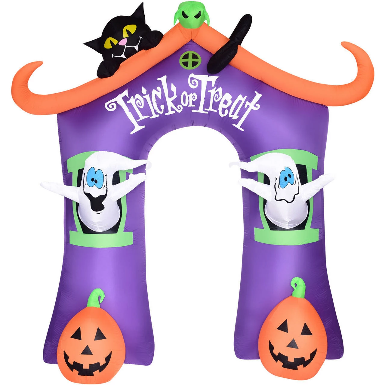 - 9-ft. Inflatable Pre-Lit Trick or Treat Walkway Arch with Black Cat, Jack-O-Lantern, and Ghost by Haunted Hill Farm