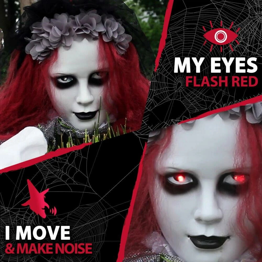- The Southern Belle from Hell is touch activated – crawls, eyes flash red, cries for help