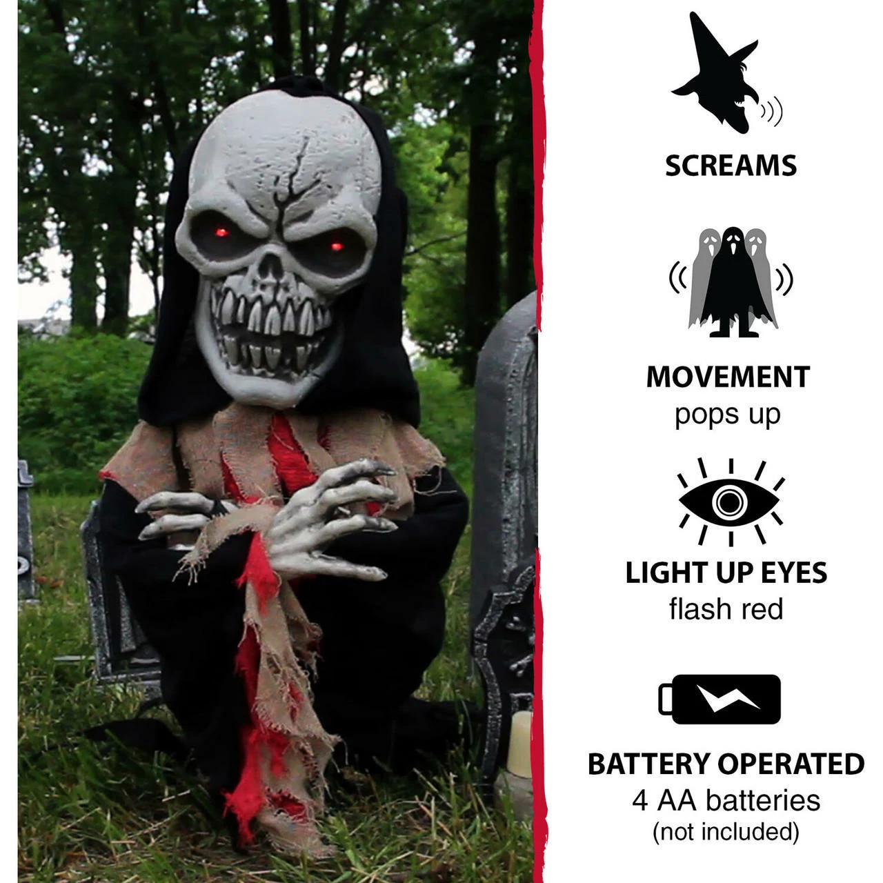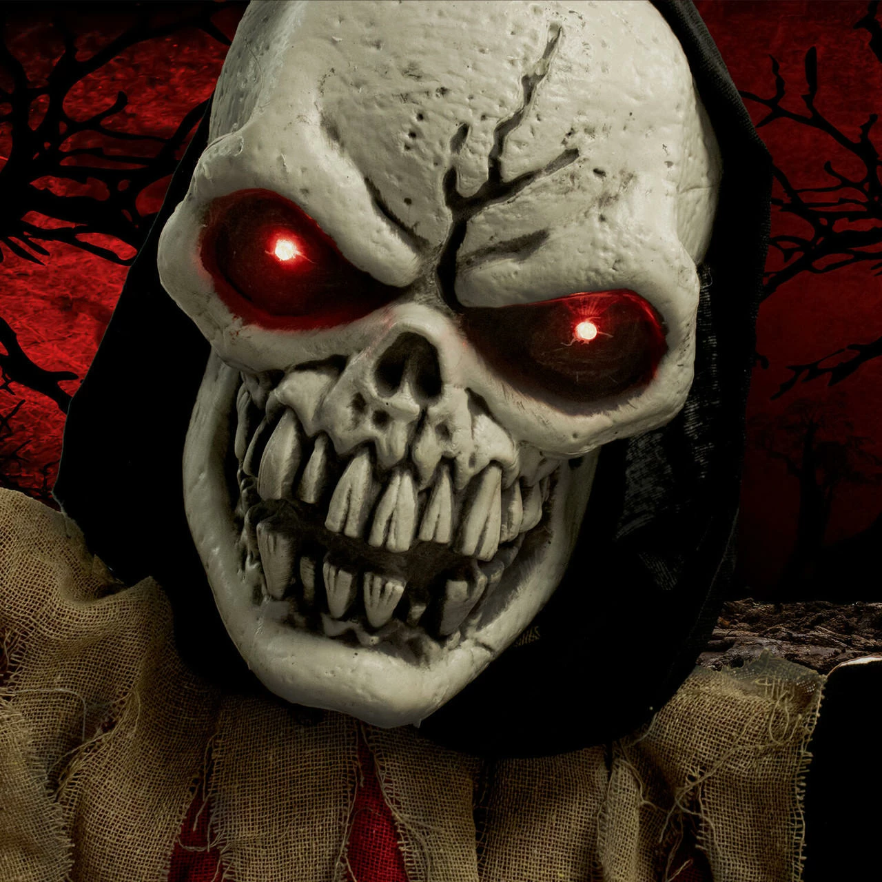 - 39 in. animatronic reaper for indoor and covered outdoor display