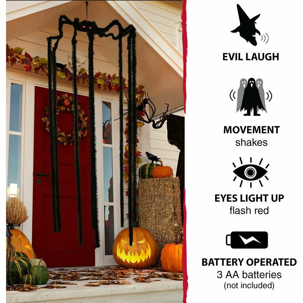 Be afraid. Be very afraid of Haunted Hill’s Haunted Halloween Collection. These bloodcurdling creatures are sure to terrify any trick-or-treaters, co-workers, or customers. Webster does not have a charming bone in his body- let alone any of his eight legs. This spider’s evil laughs are certain to send chills through anyone who crosses his path. His red flashing eyes illuminate the and horrify all, even the fearless. Webster laughs mockingly, shakes, and plays eerie music. His faux fur may seem temptingly soft, but beware. He is hardened evil to the core. Invite Webster to your haunted house this Halloween, but keep an eye on him. You can never tell what plan he might be weaving.