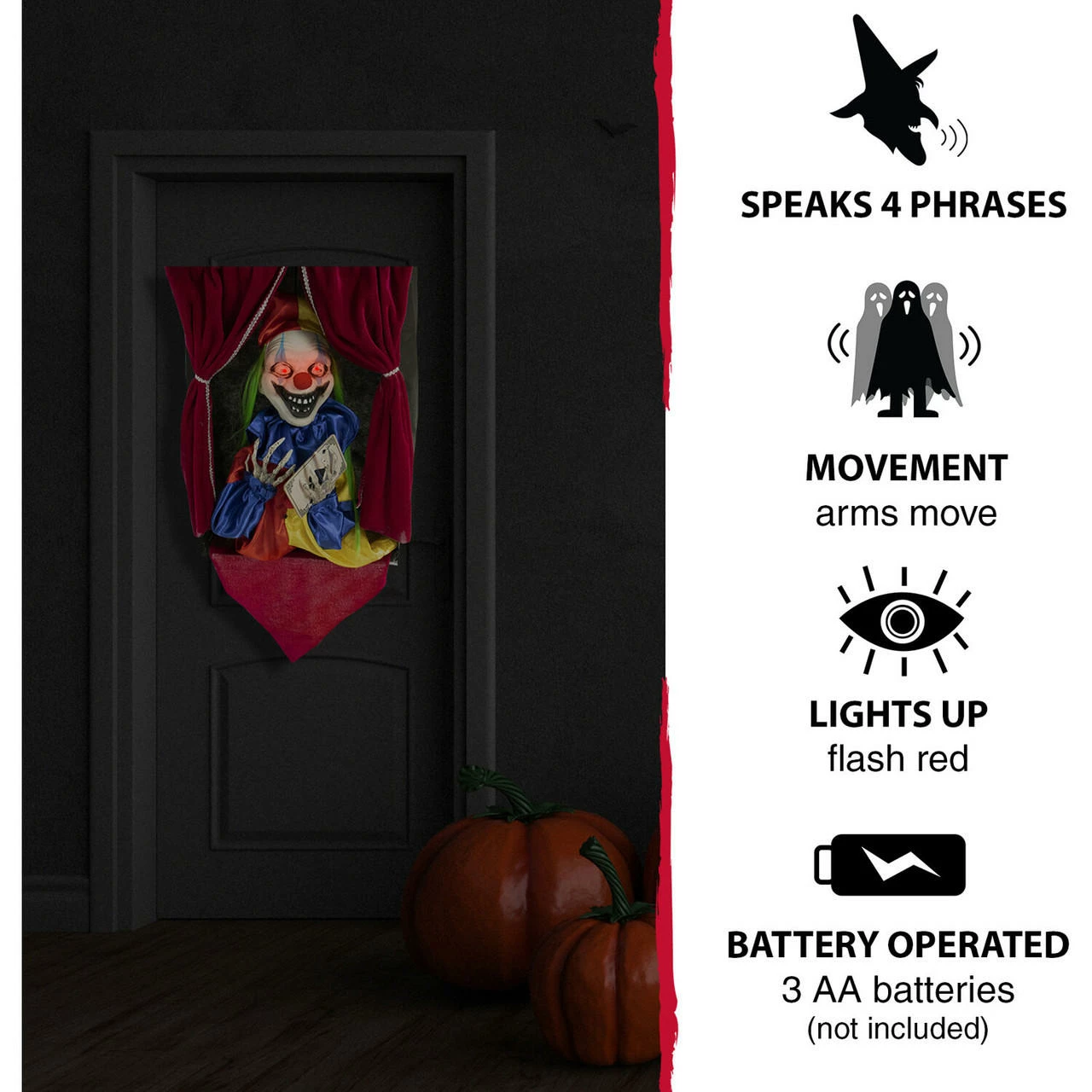 - 27 in. animatronic clown for indoor and covered outdoor displays