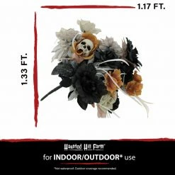 Accentuate the goth side of Halloween with this spooky bouquet from Haunted Hill Farm. Black and off-white flowers are arranged in a lovely, round bouquet topped with white wispy leaves and a skull peeking out among the buds. Place this piece in its own spooky vase to complete a festive tablescape for a unique Halloween look. Better yet, pair it with our spooky skeleton base sold separately (HHSKELVASE-1). Be the spook of the town this Halloween with Haunted Hill Farm.