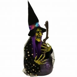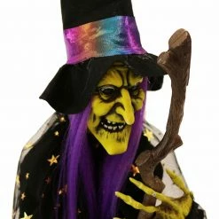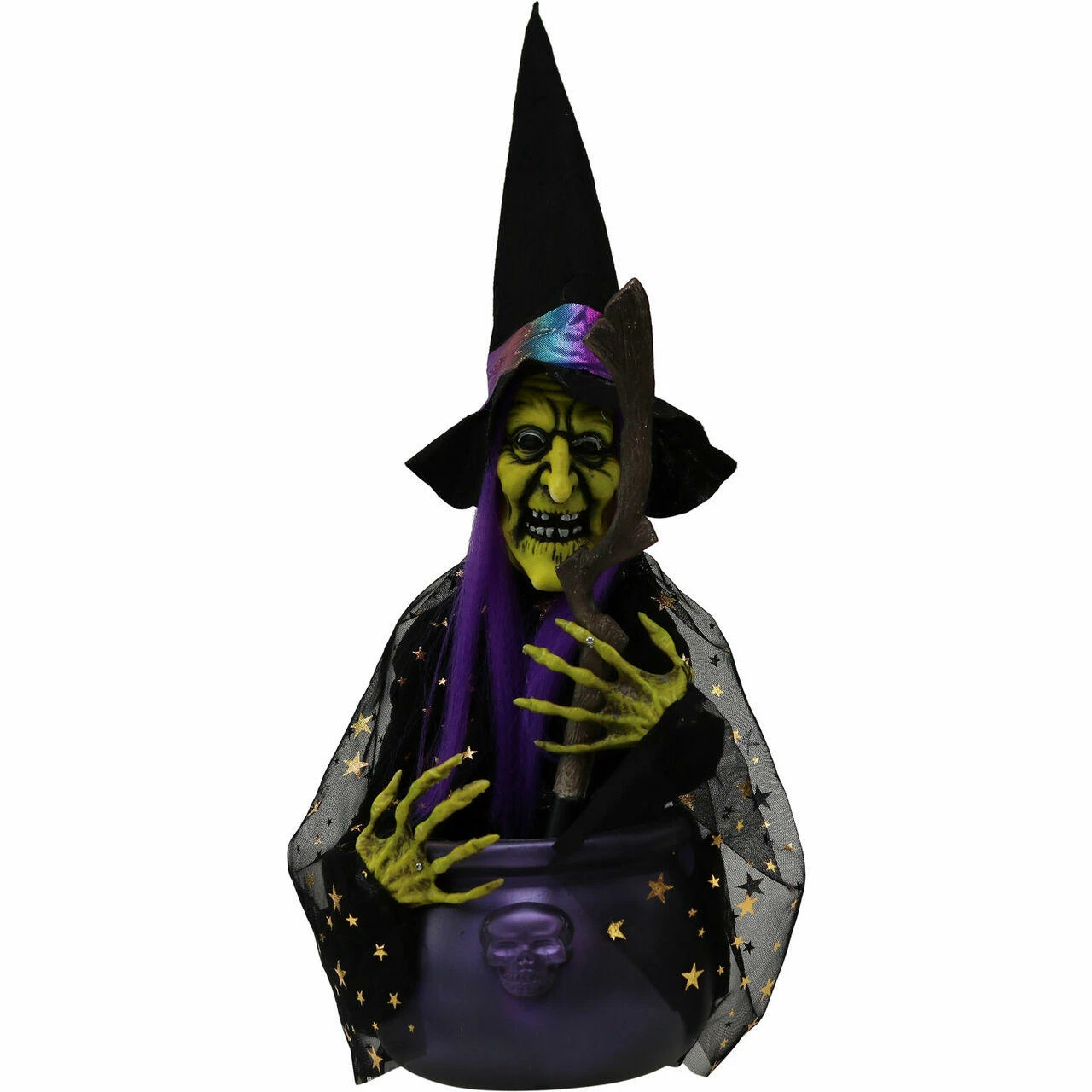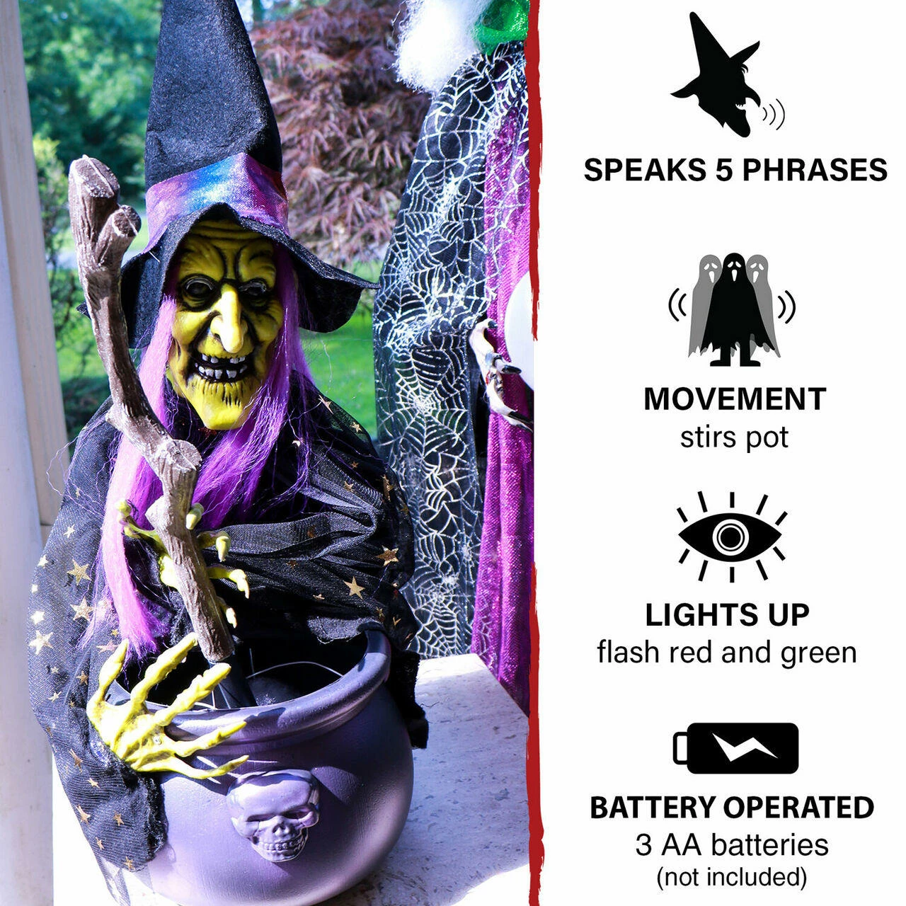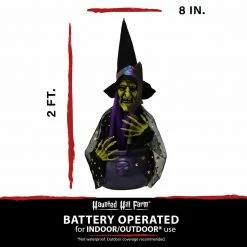 - 1.4-ft. animated witch and cauldron for indoor or covered outdoor display