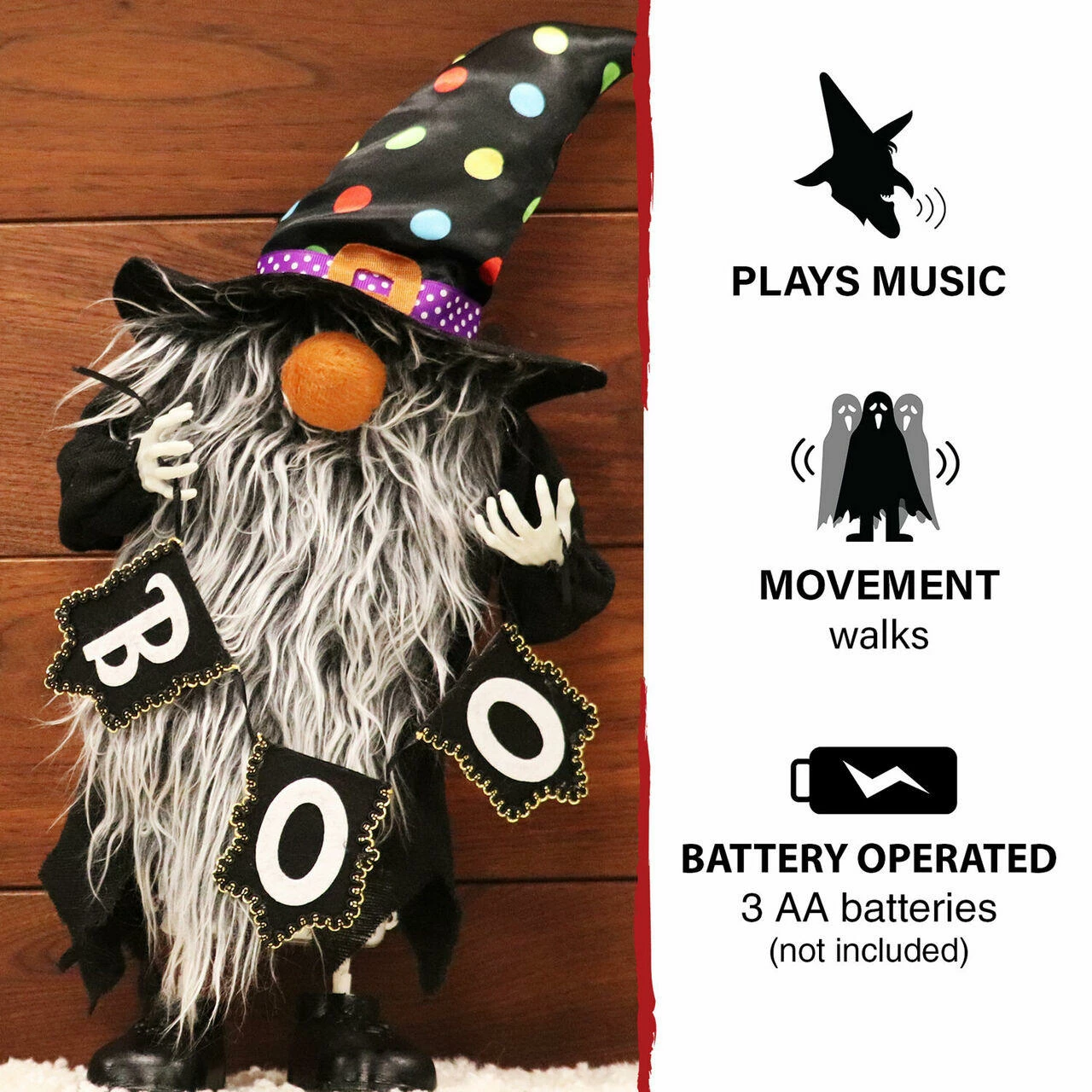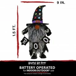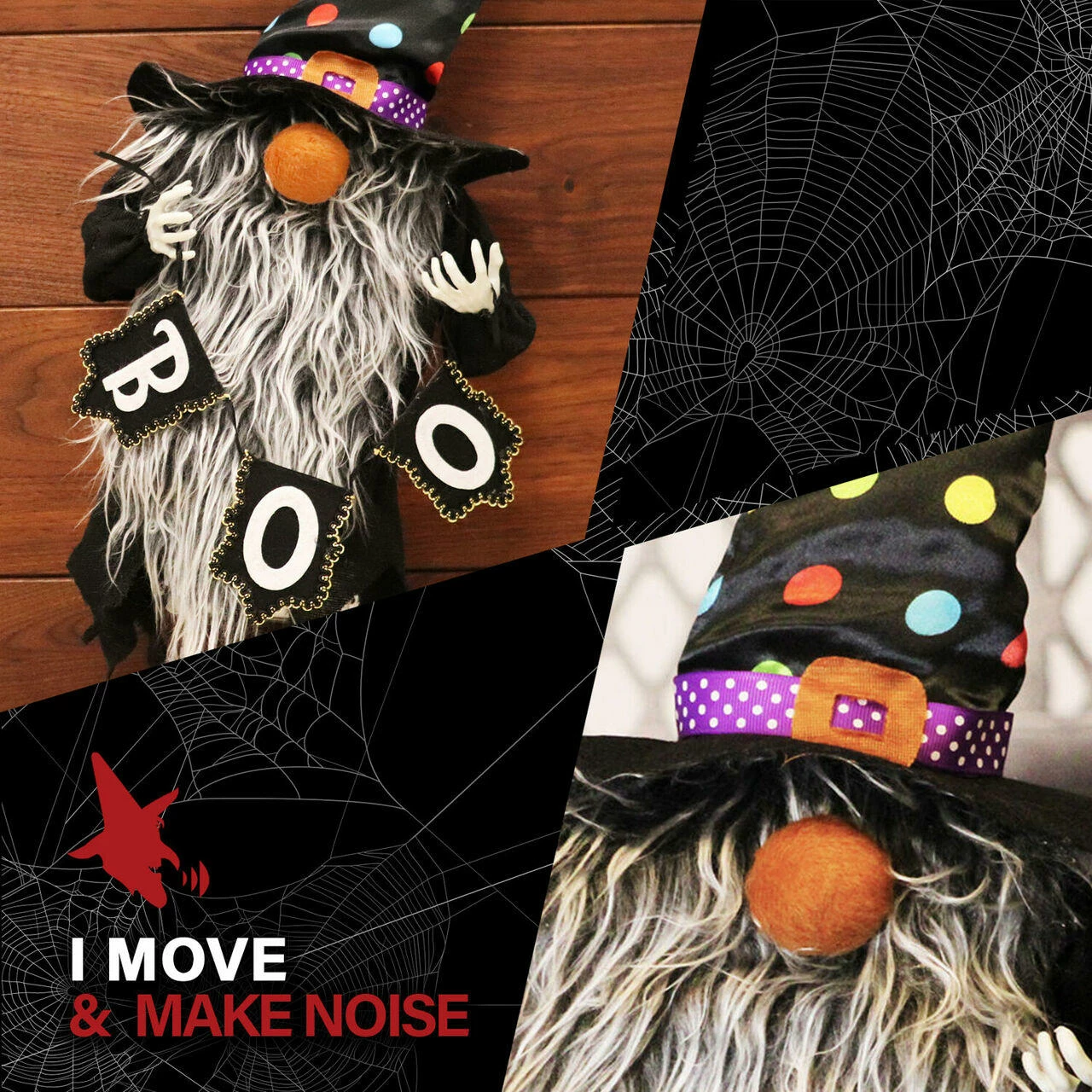 Halloween isn’t just for scaring anymore; it’s also about delightfully spooky celebrations and candy, of course! Haunted Hill Farm’s Gnomad, the walking gnome, is ready to bring in the autumn season fun with his long gray beard and polka-dotted witch hat. He’ll get the kids in a sweet mood by playing the aptly chosen song, I Want Candy, and walking along to the music while holding his festive BOO banner. Surprise and delight trick-or-treaters with Gnomad’s fun performance and be the house remembered for more than just the candy selection.