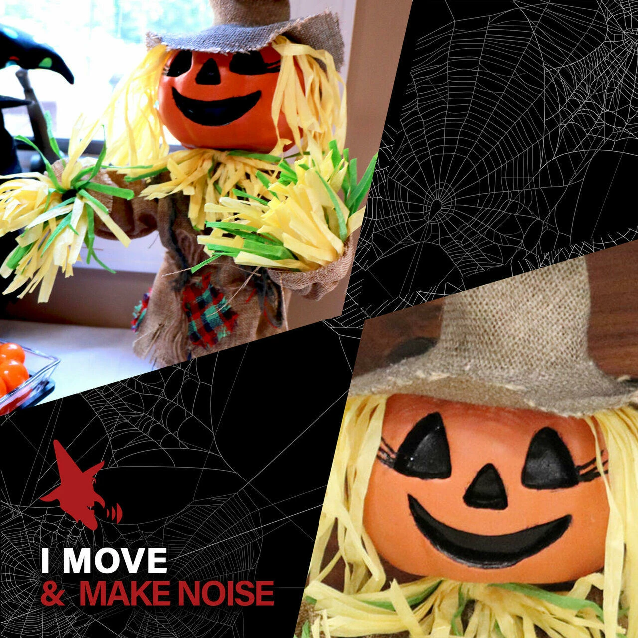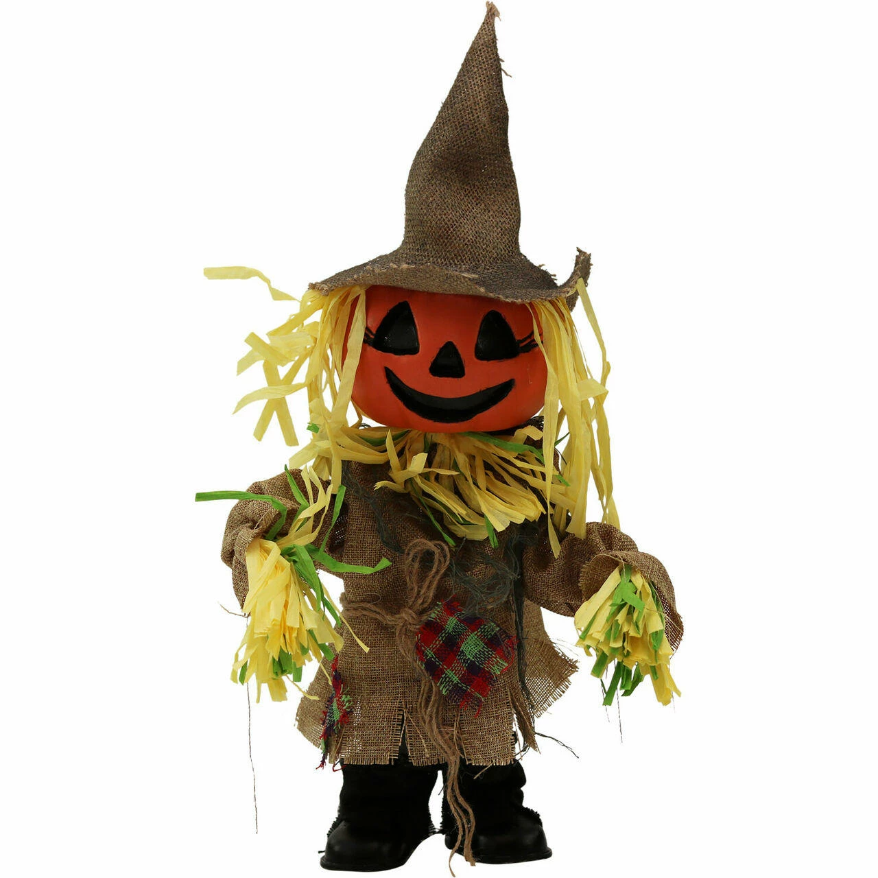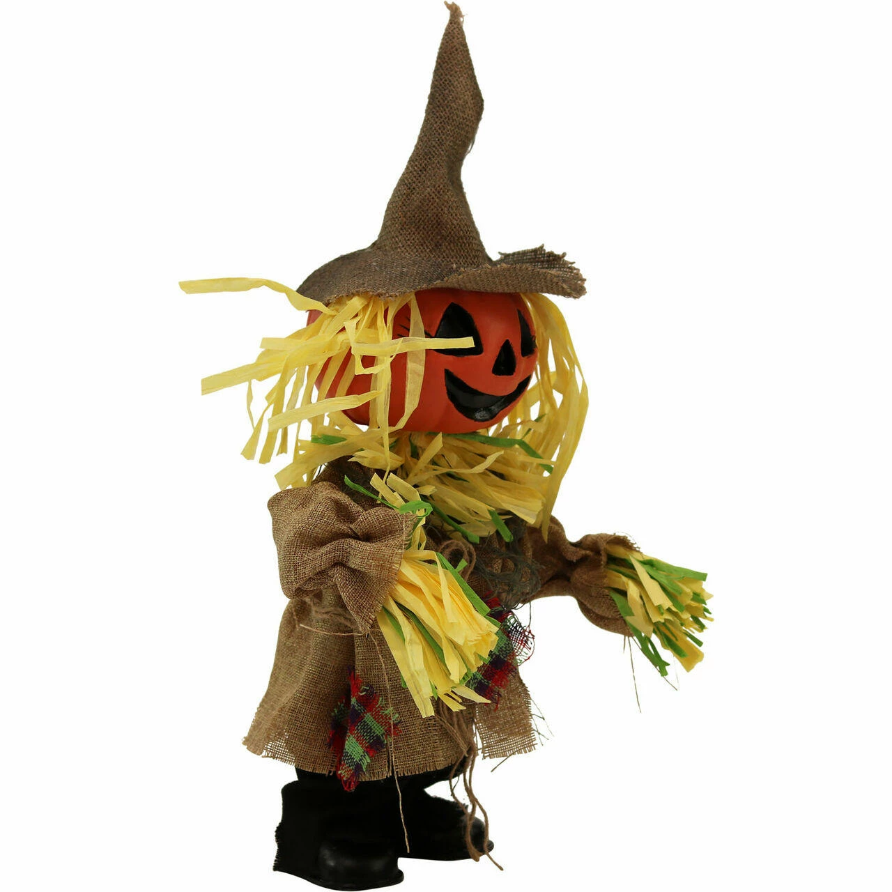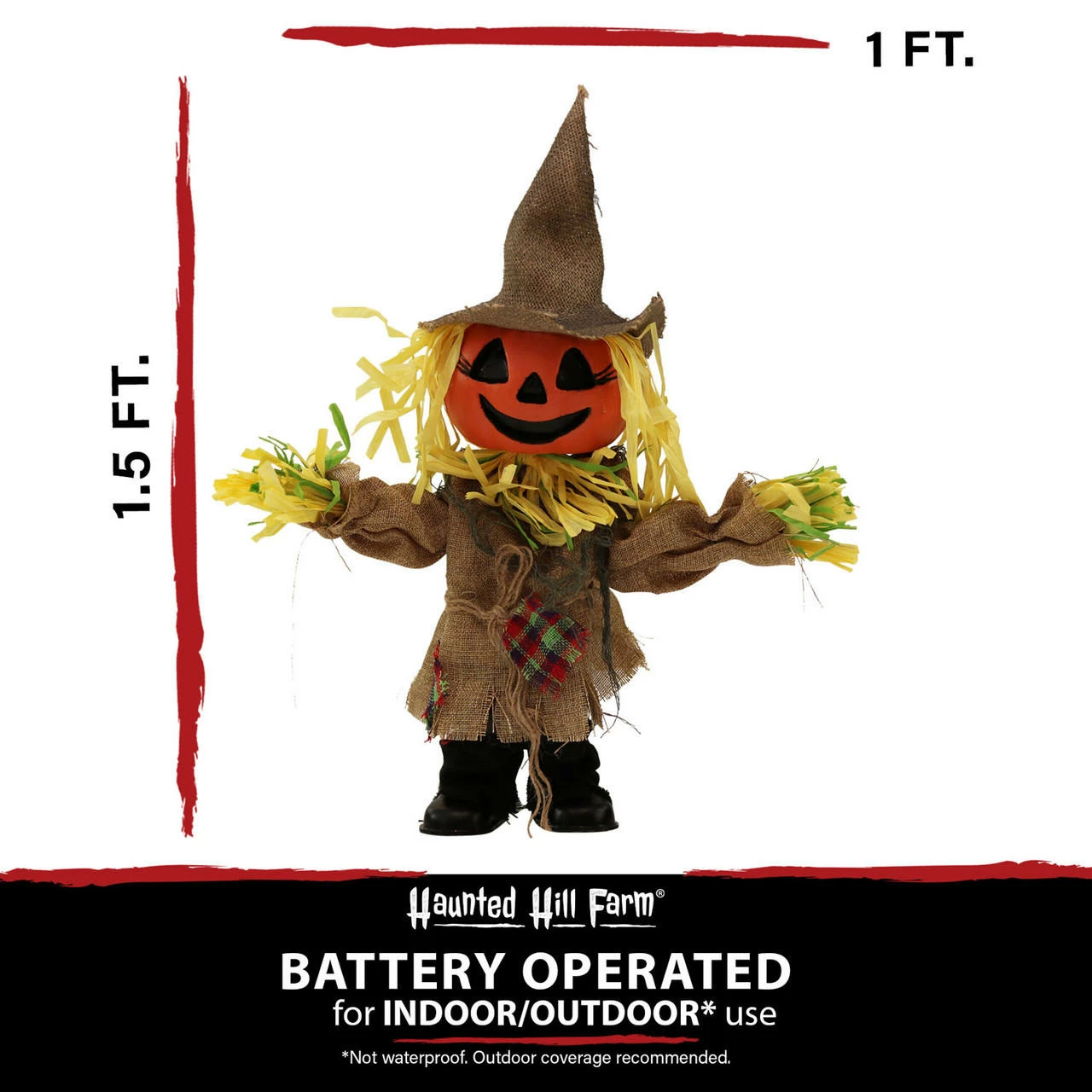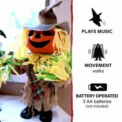 - 1.5-ft. walking pumpkin scarecrow for indoor and covered outdoor display