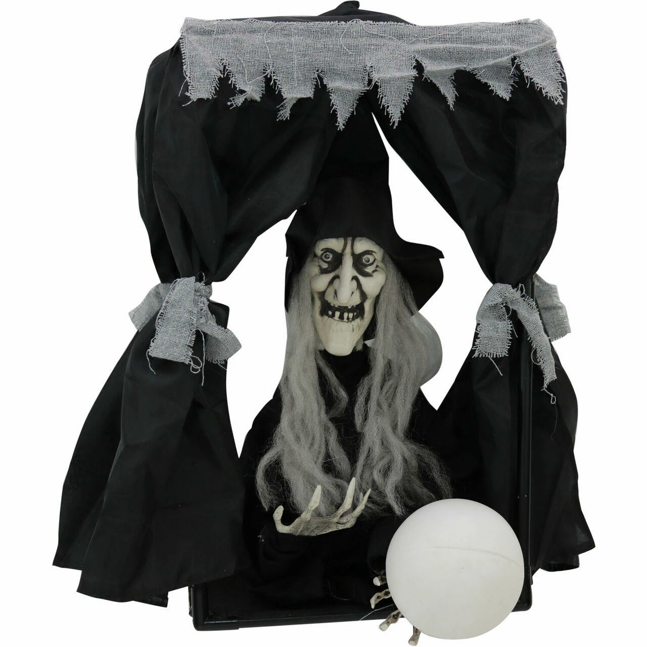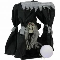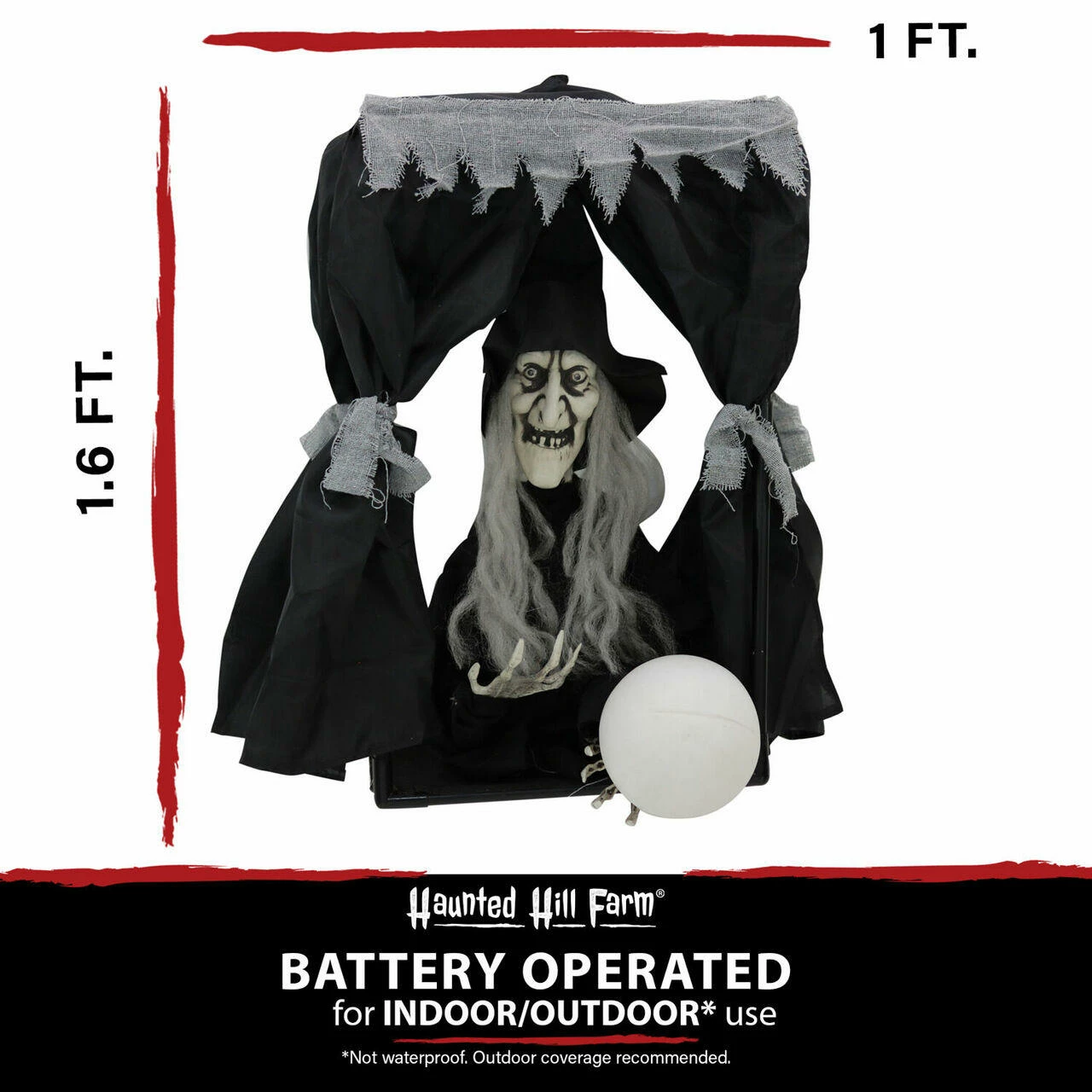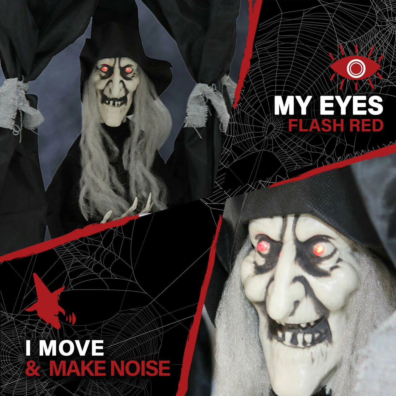 - 1.6-ft. animated hanging witch in box for indoor and covered outdoor display