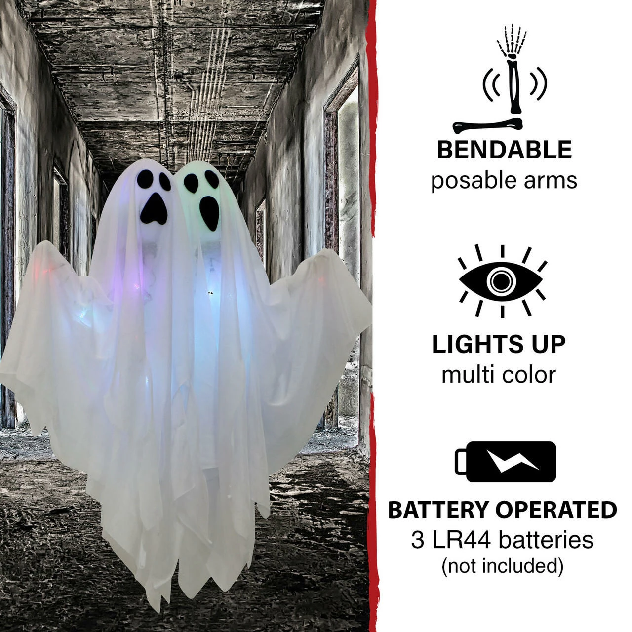 Be afraid. Be very afraid of Haunted Hill Farm’s Ghost Collection. These blood curdling creatures are sure to terrify any trick-or-treaters, co-workers, or customers. The only thing spookier than one ghost is-you guessed it-two! This pair of color-changing ghosts is sure to bring a fabulous undead energy to your Halloween decoration. Don’t worry though, these phantoms are kid-friendly and aren’t out to scare anyone; both ghosts are here to enjoy the holiday with your neighborhood. Hang them from your porch, in doorways, or above your treats to greet visitors with real spirit (get it?). You can even bend their arms to beckon guests closer. Happy Halloween!