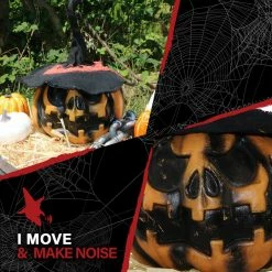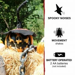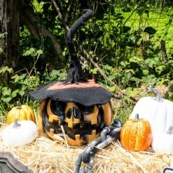 - 1.8-Ft. shaking pumpkin with witch hat for indoor and covered outdoor display