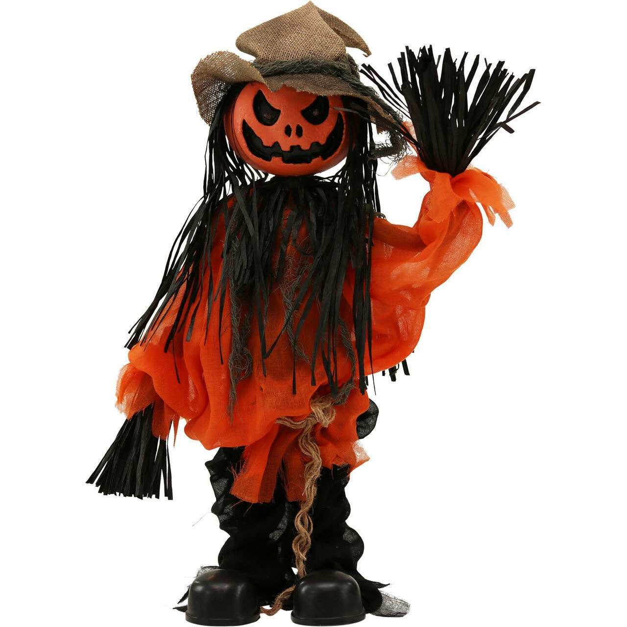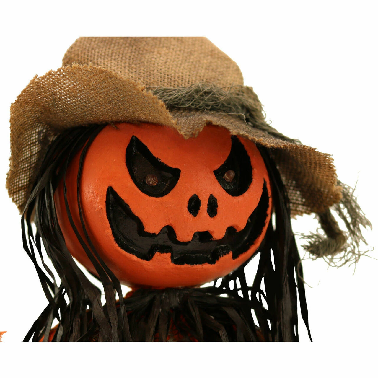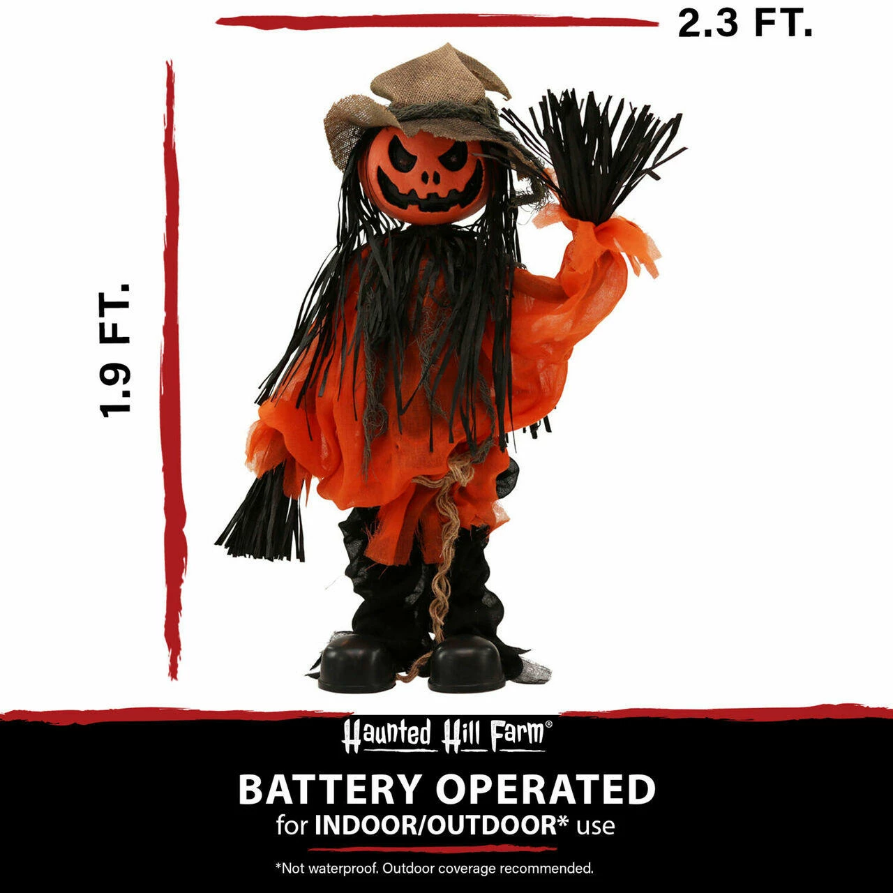 - 1.9-ft. standing pumpkin scarecrow for indoor and covered outdoor display