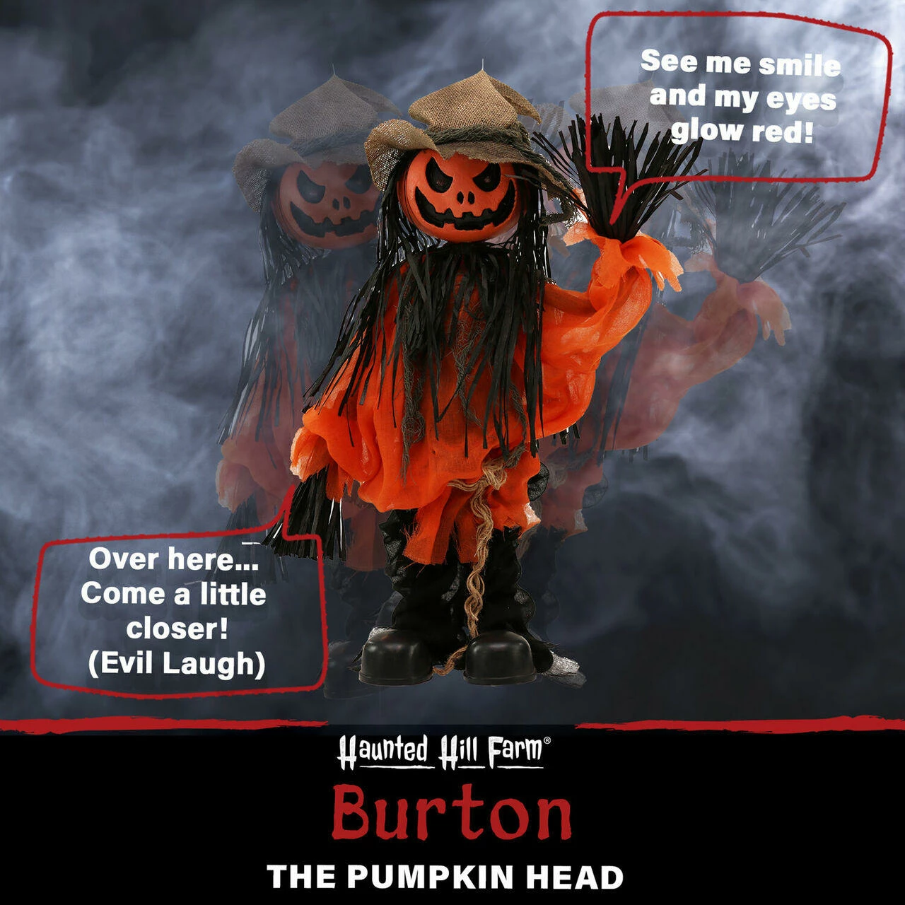 Be afraid. Be very afraid of Haunted Hill Farm’s haunted cornfield collection. These blood curdling creatures are sure to terrify any trick-or-treaters, co-workers, or customers. Burton the pumpkin head puts the scare in scarecrow with his twisted smile and glowing red eyes that stay trained on you even after you walk away. Go a little closer and you’ll awaken his senses that cause him to move his arms eerily while his terrifying laugh rings through the air over the wails of his latest victim. What you might think is a harmless scarecrow at first glance quickly proves otherwise with spooks that will haunt you even in your nightmares.