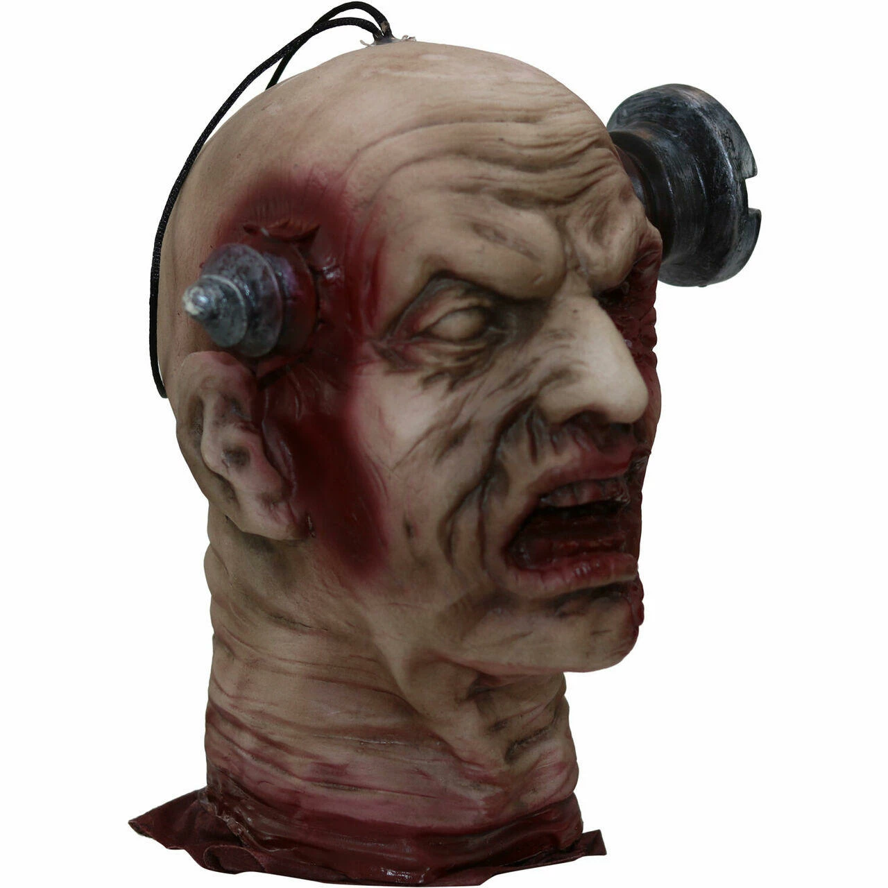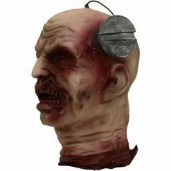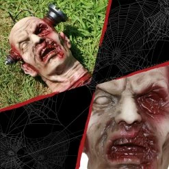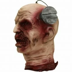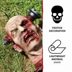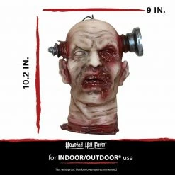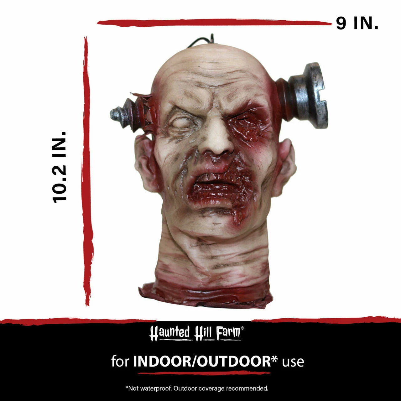 - 10.5-in. zombie head Halloween decoration for indoor/covered outdoor display