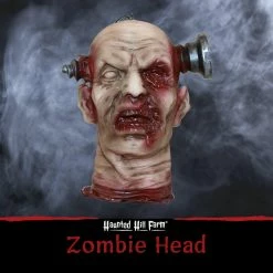 Celebrate this Halloween with the perfect finishing touch zombie head from Haunted Hill Farm’s Haunted Halloween Collection. His gruesome face will horrify all those he comes in contact with. He is the perfect addition to any haunted house and is very lightweight and will fit perfectly on your porch or in your house. His demonic eyes and gruesome accessories make stand out in trees or decorations. Step into a spook-filled Halloween this year with Haunted Hill Farm.