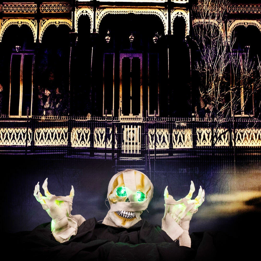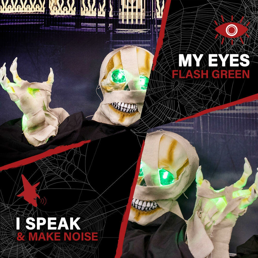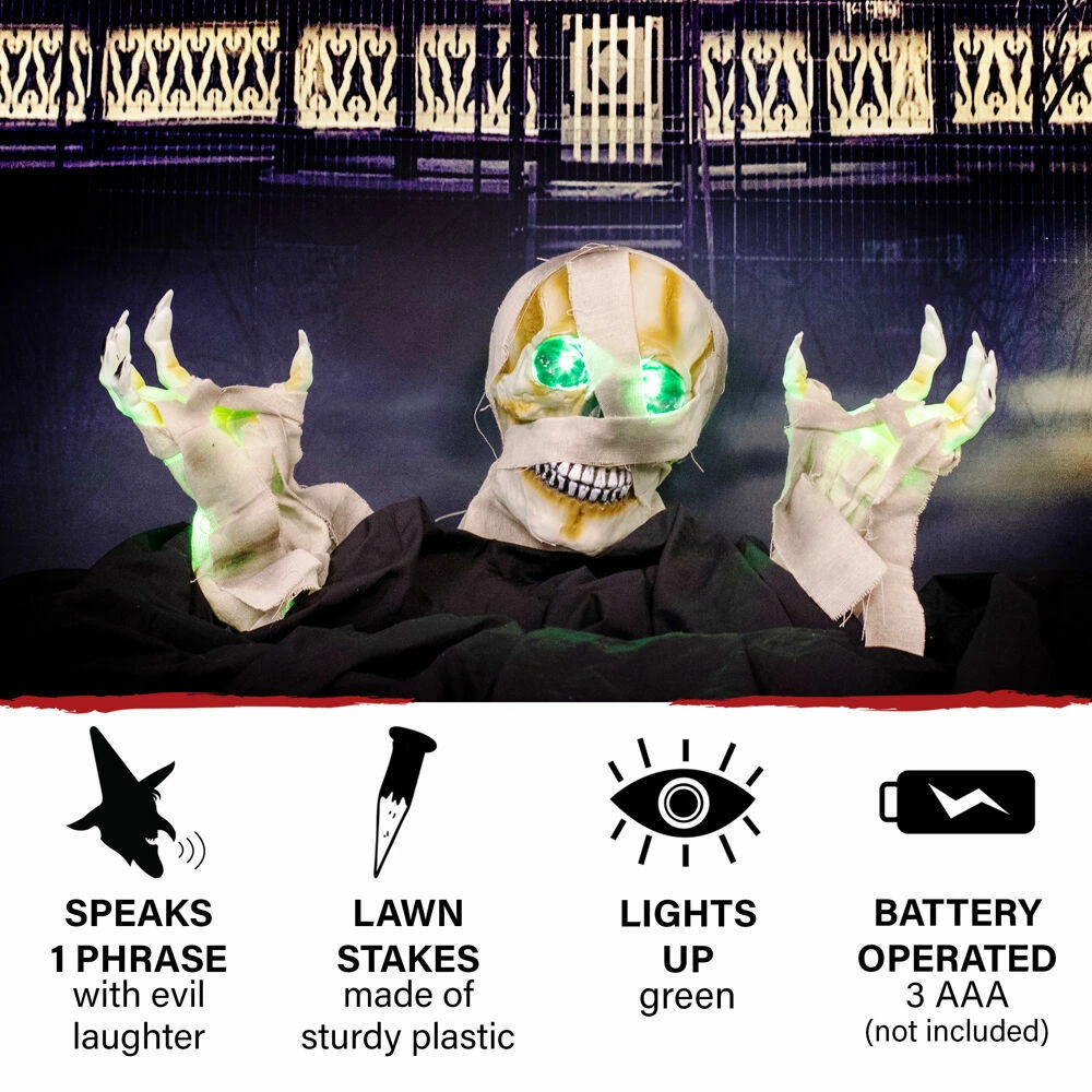 - Connected 3-piece mummy lawn-stake creature comes to life to step up your Halloween display