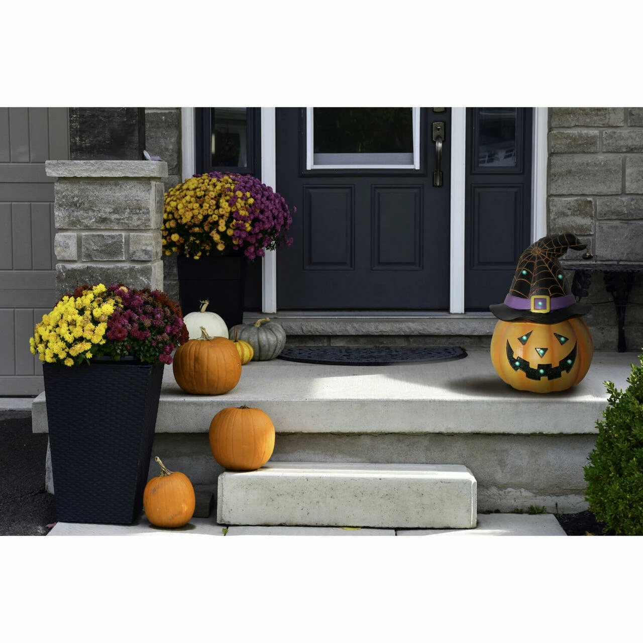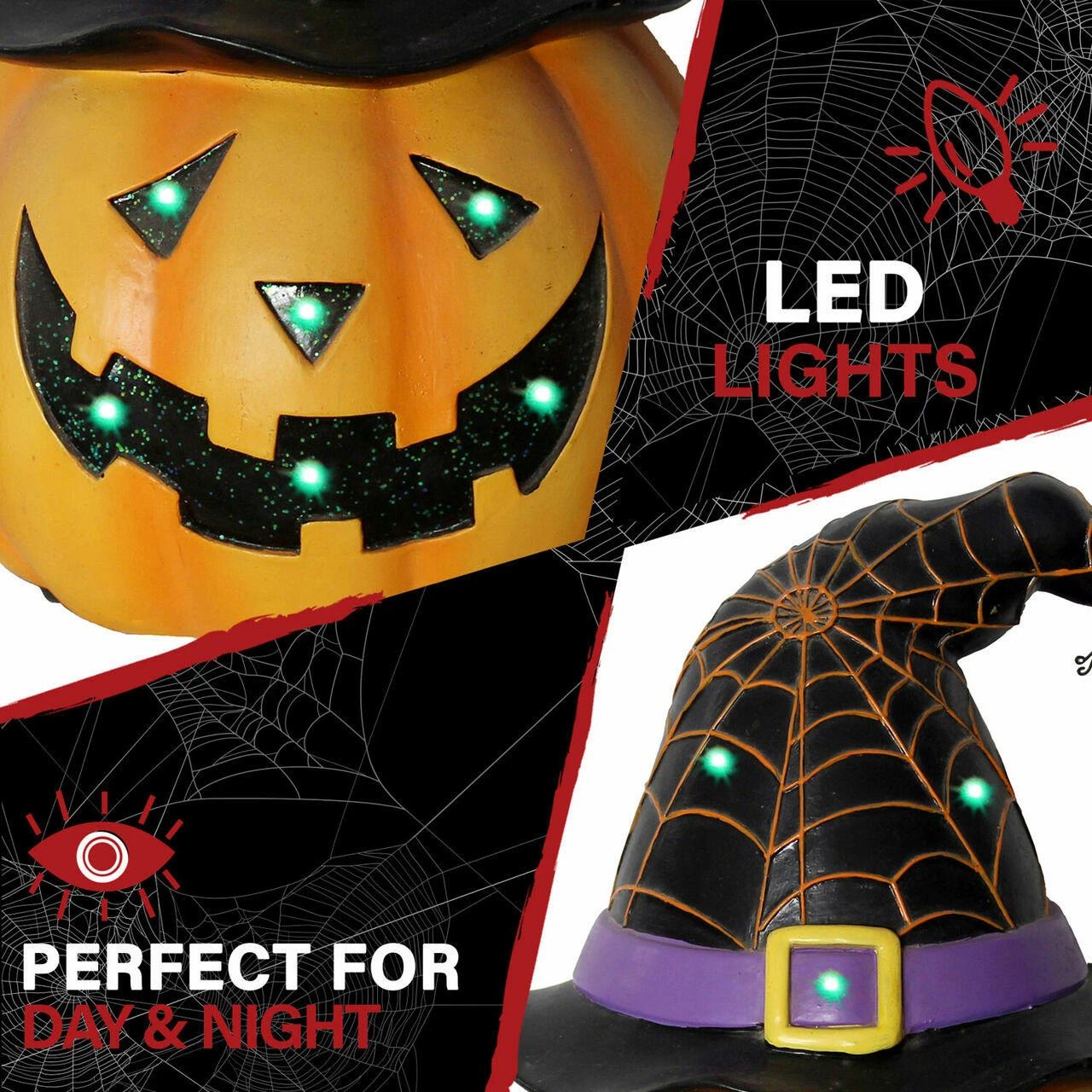- Resin Jack O’ Lantern with witch hat and spider detail