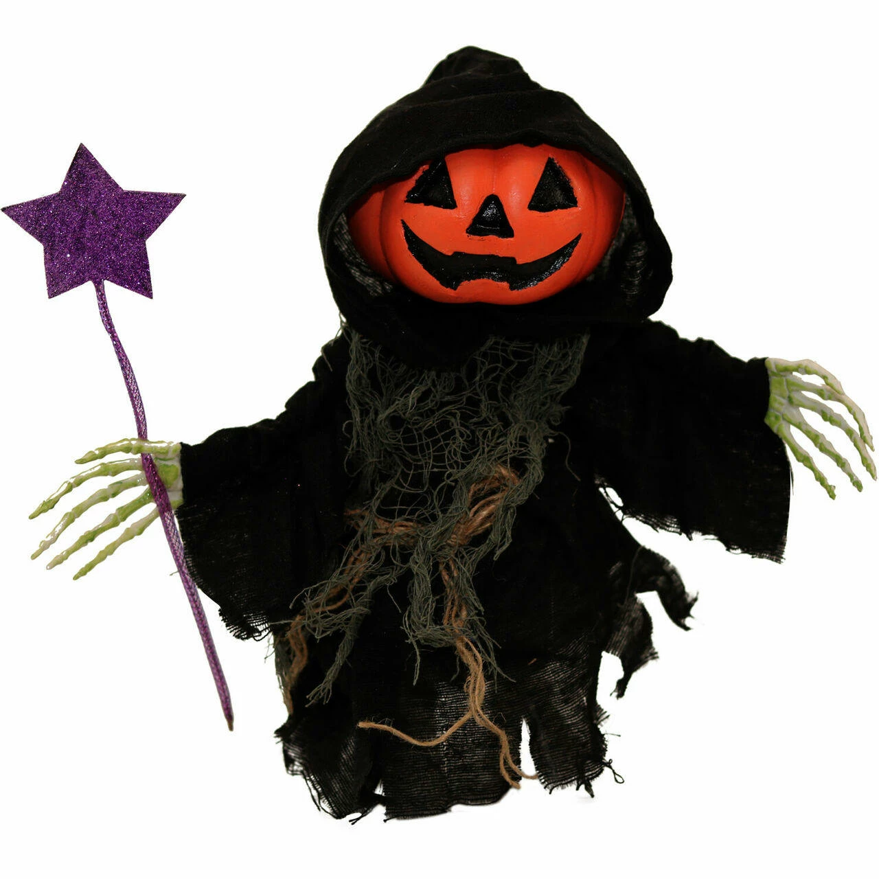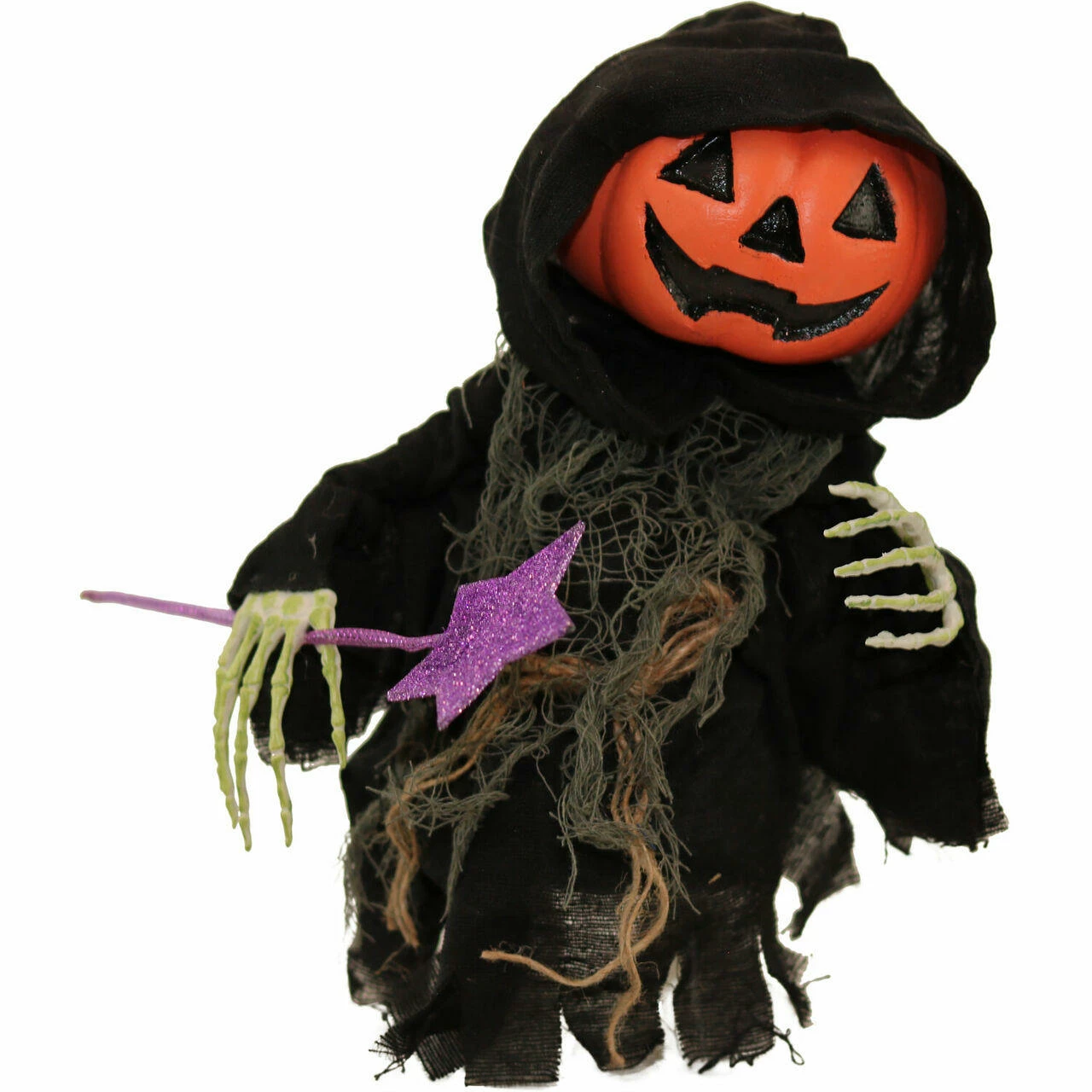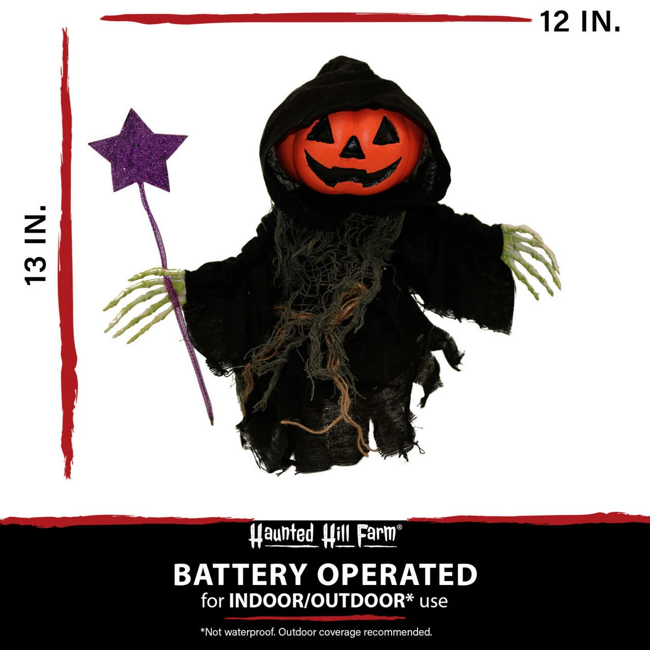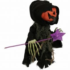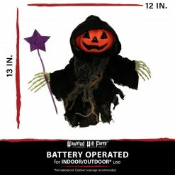 - 13-in. walking pumpkin reaper for indoor and covered outdoor display