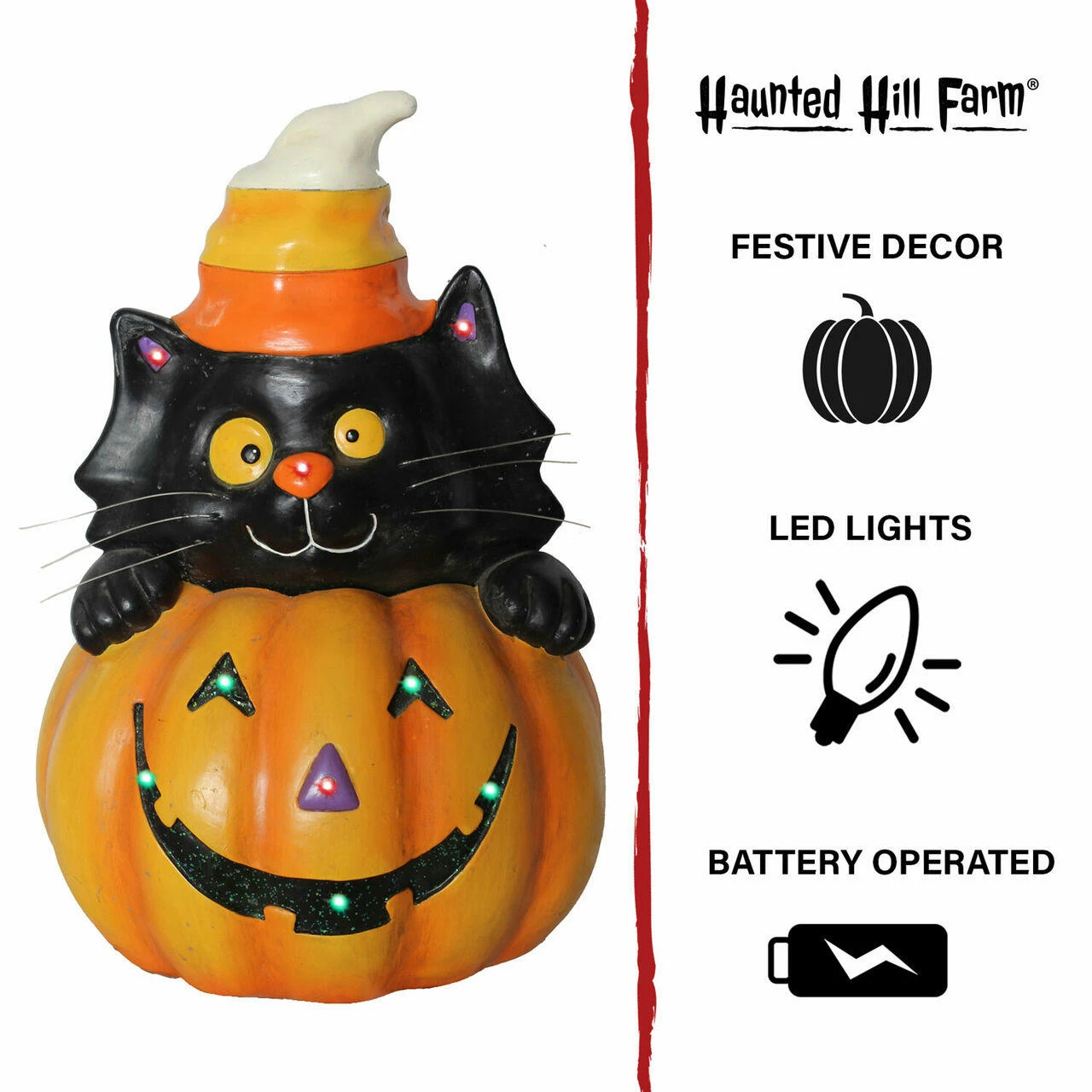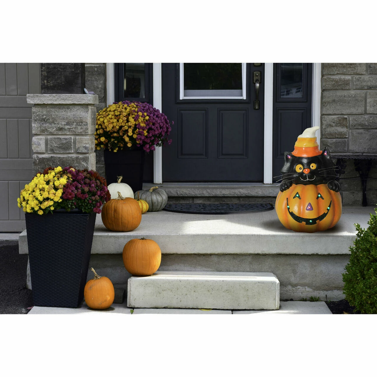 - Battery Operated Jack O’ Lantern Cat Stack Halloween Decoration with LED Lights by Haunted Hill Farm