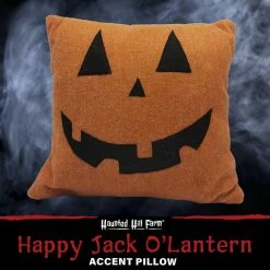 - Happy Jack O’Lantern accent pillow from Haunted Hill Farm – buy two to flank your favorite sofa or loveseat
