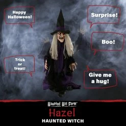 Be afraid. Be very afraid of Haunted Hill Farm’s curses and cauldrons collection. These blood curdling creatures are sure to terrify any trick-or-treaters, co-workers, or customers. Hazel the witch will scare children and adults alike with her haggish face and bony fingers. When someone walks into her, she comes alive, moving her head and arms and speaking increasingly creepy phrases including, “Happy Halloween,” “Surprise!” “Trick or Treat,” “Boo!” and “Give me a hug!” with her eerie laughs dispersed throughout. Hazel is exactly what you’d picture when thinking of a spooky witch and manages to be even more unsettling in person.
