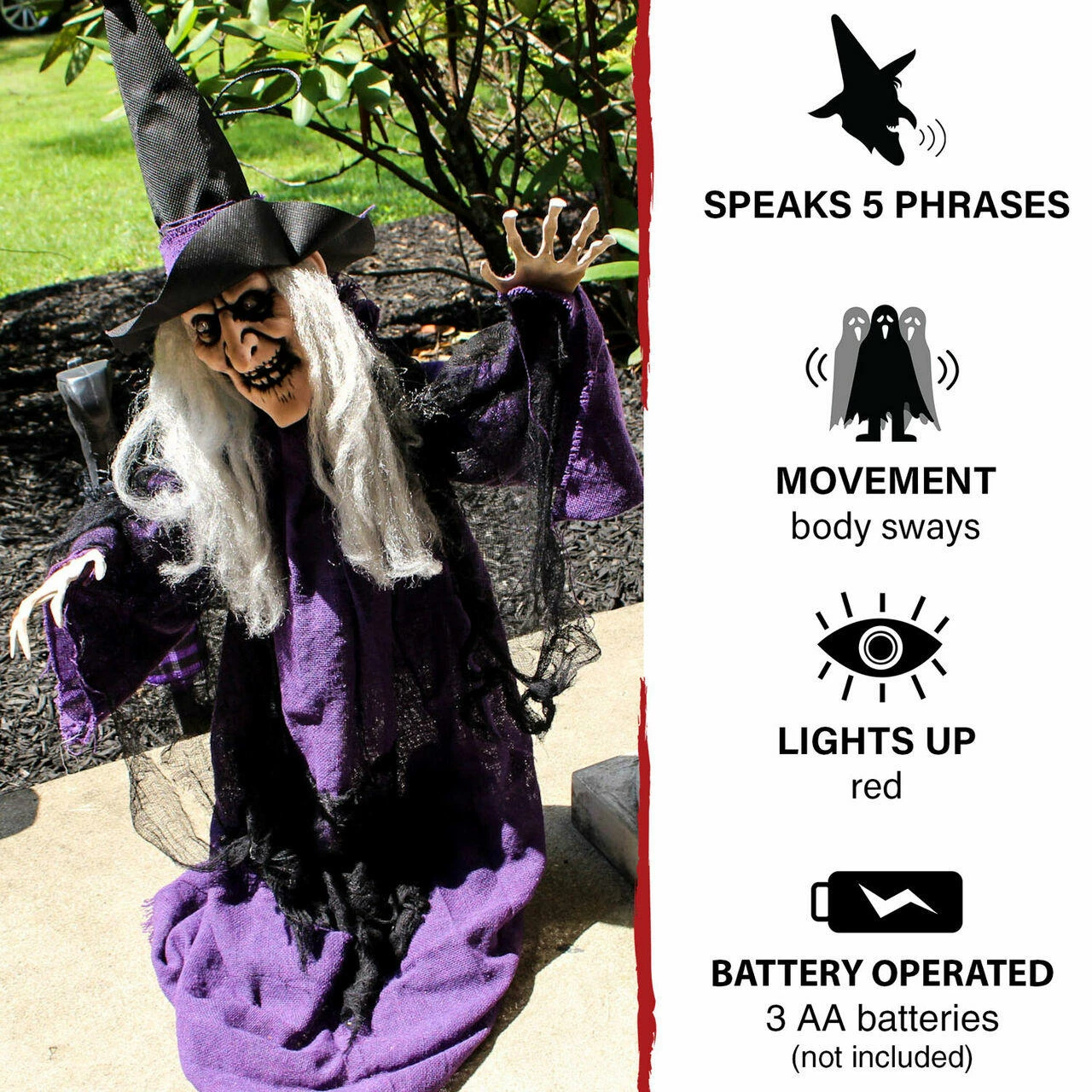 - 2.25-ft. standing witch for indoor and covered outdoor display
