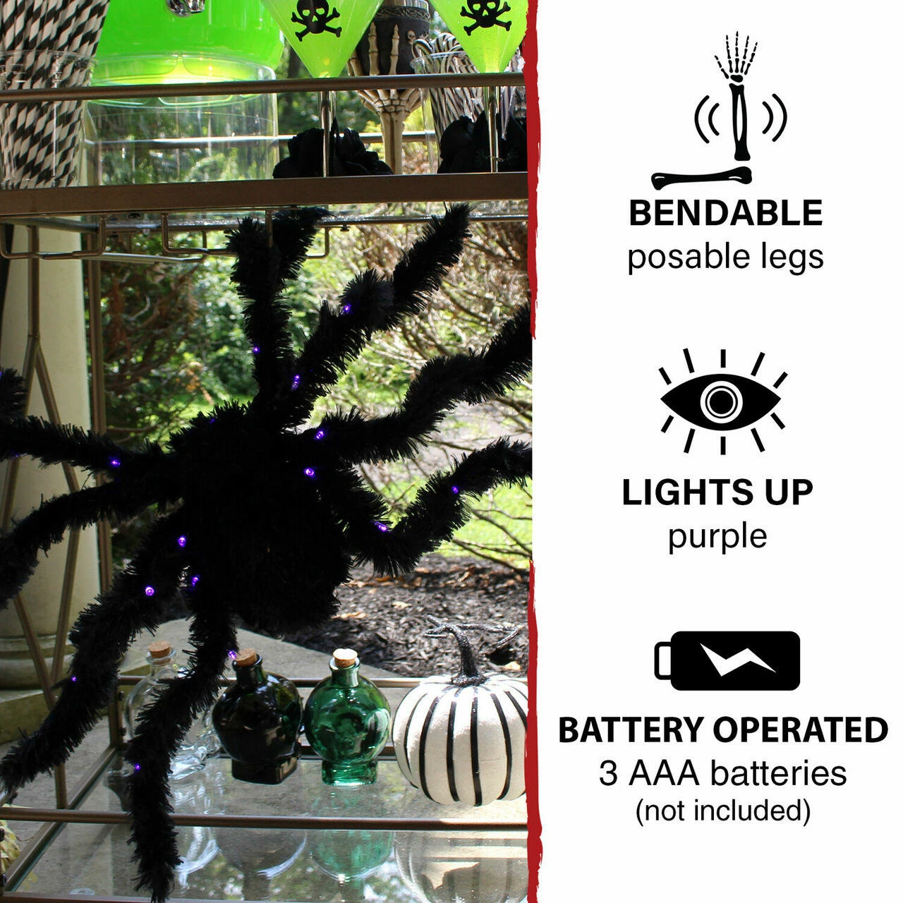 - 2.25-ft. light-up spider for indoor and covered outdoor display