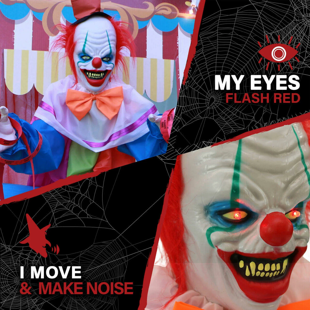 - Circus music and nasal clown voice greets visitors with four frightening phrases