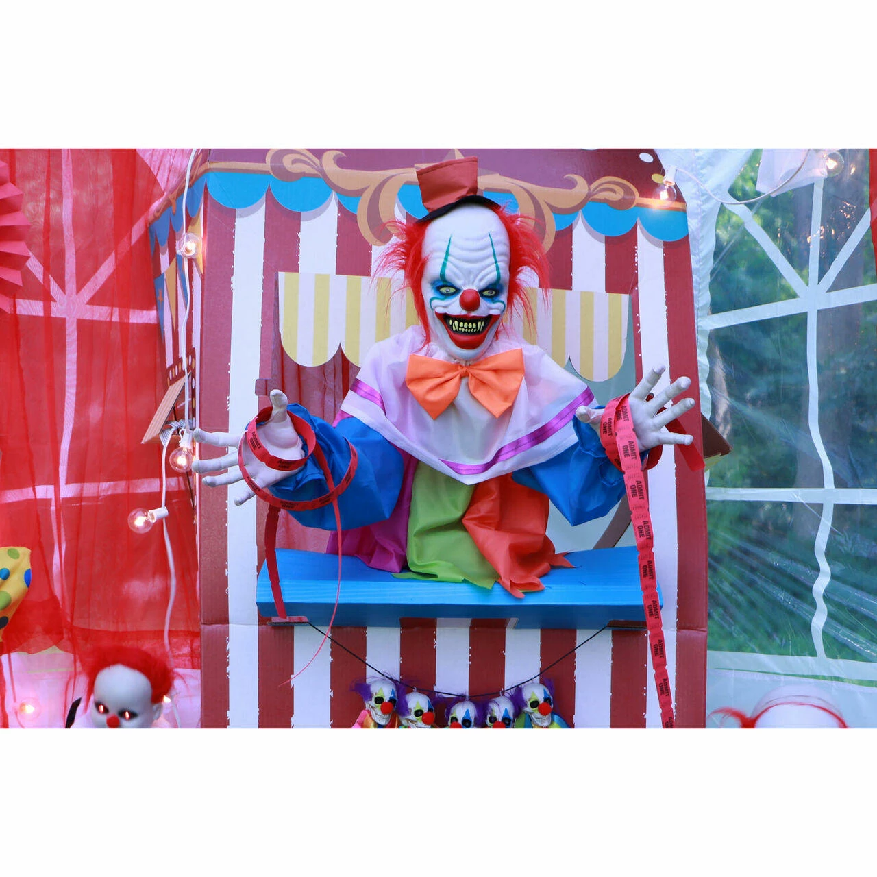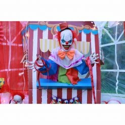 - 2.5-ft. animated clown groundbreaker for indoor and covered outdoor display