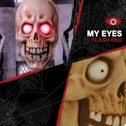 Be afraid. Be very afraid of Haunted Hill Farm’s Haunted Halloween Collection. These blood curdling creatures are sure to terrify any trick-or-treaters, co-workers, or customers. This animated mummy head is sure to make a lasting first impression with anyone who crosses his path. With his wicked smile, he entices people to come closer, but little do they know, they should be doing the exact opposite. His red eyes pierce through his tan cloak, leaving an ominous feeling to whomever dares to enter his territory. This mummy looks excited… but that’s because he can see his next meal in site. His demonic empty eyes and wild smile only add to the mummy’s sinister energy. If not for his crazy eyes, one almost could think this reaper is…friendly? And that’s just what he wants.