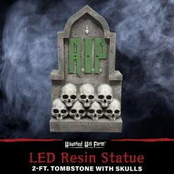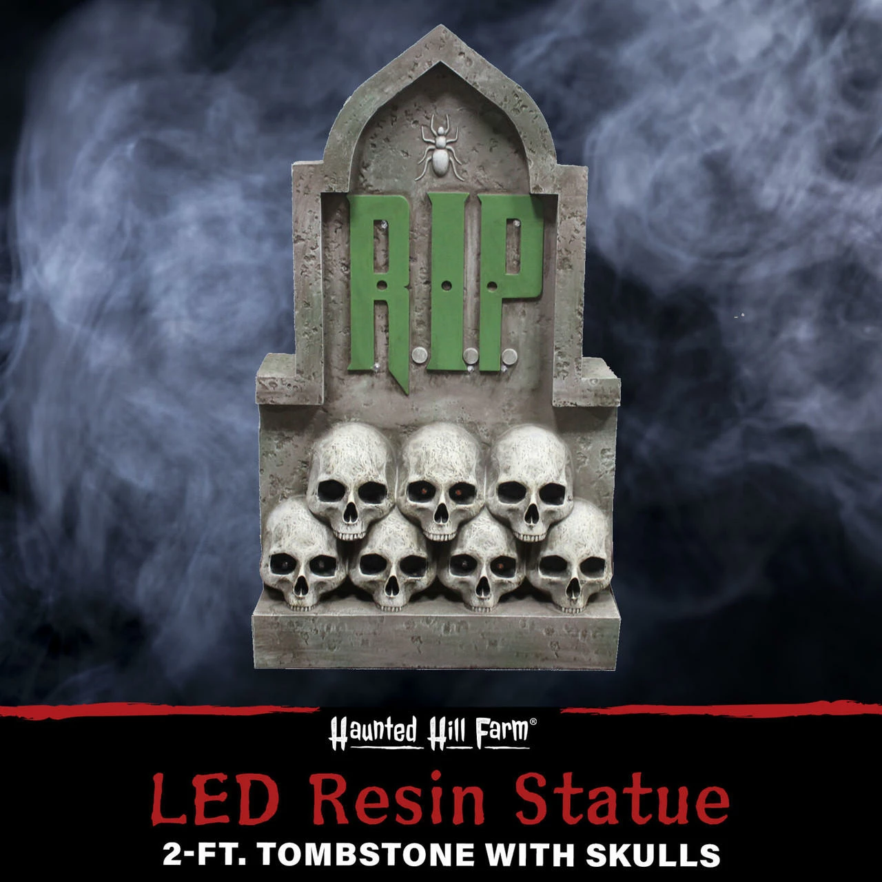 - RIP Tombstone with Skulls prelit resin statue for home or porch decor