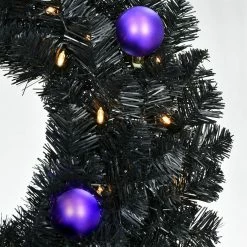 - 24-in black tinsel wreath from Haunted Hill Farm for indoor and outdoor display