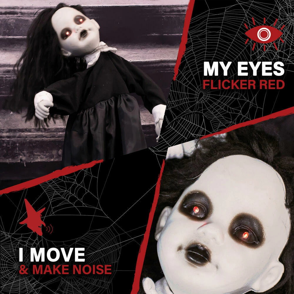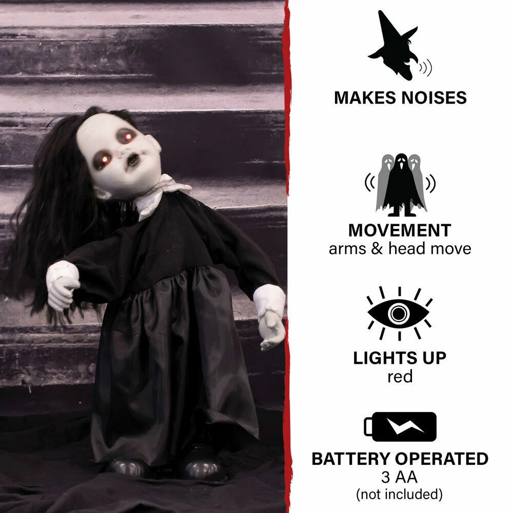 - Ghostly growling and haunted noises from this little Halloween creature will surely give you goosebumps