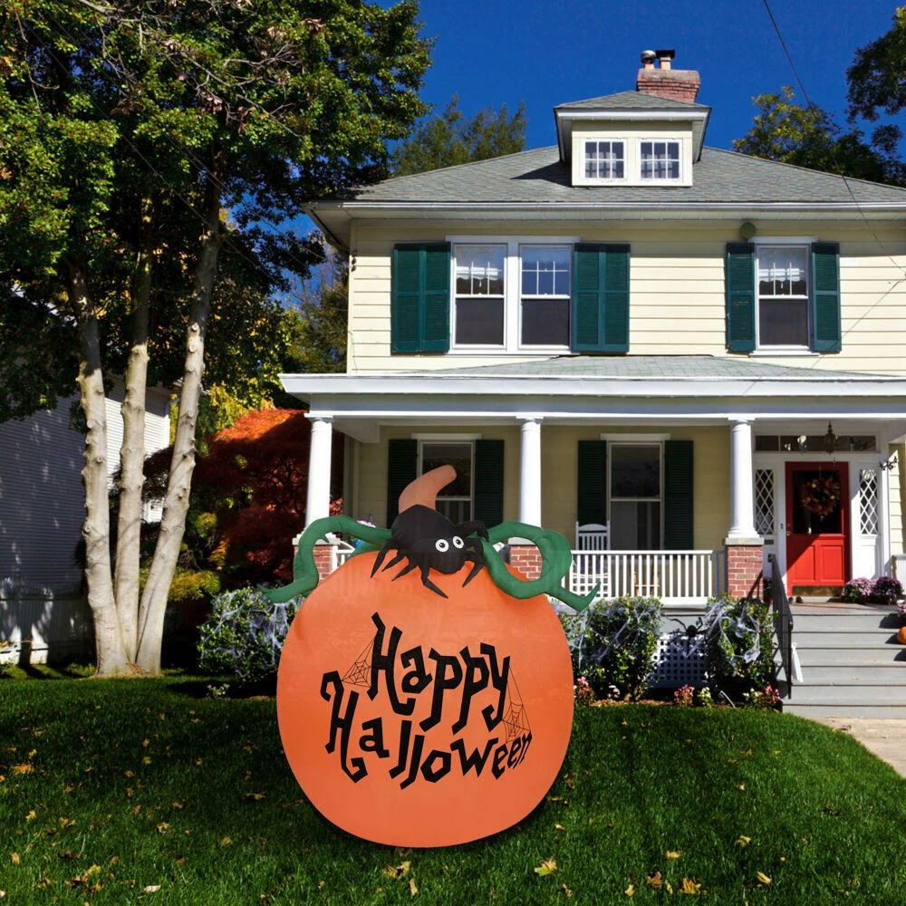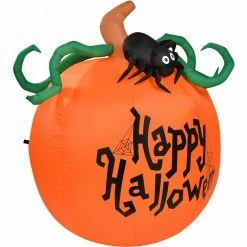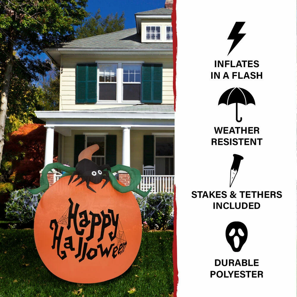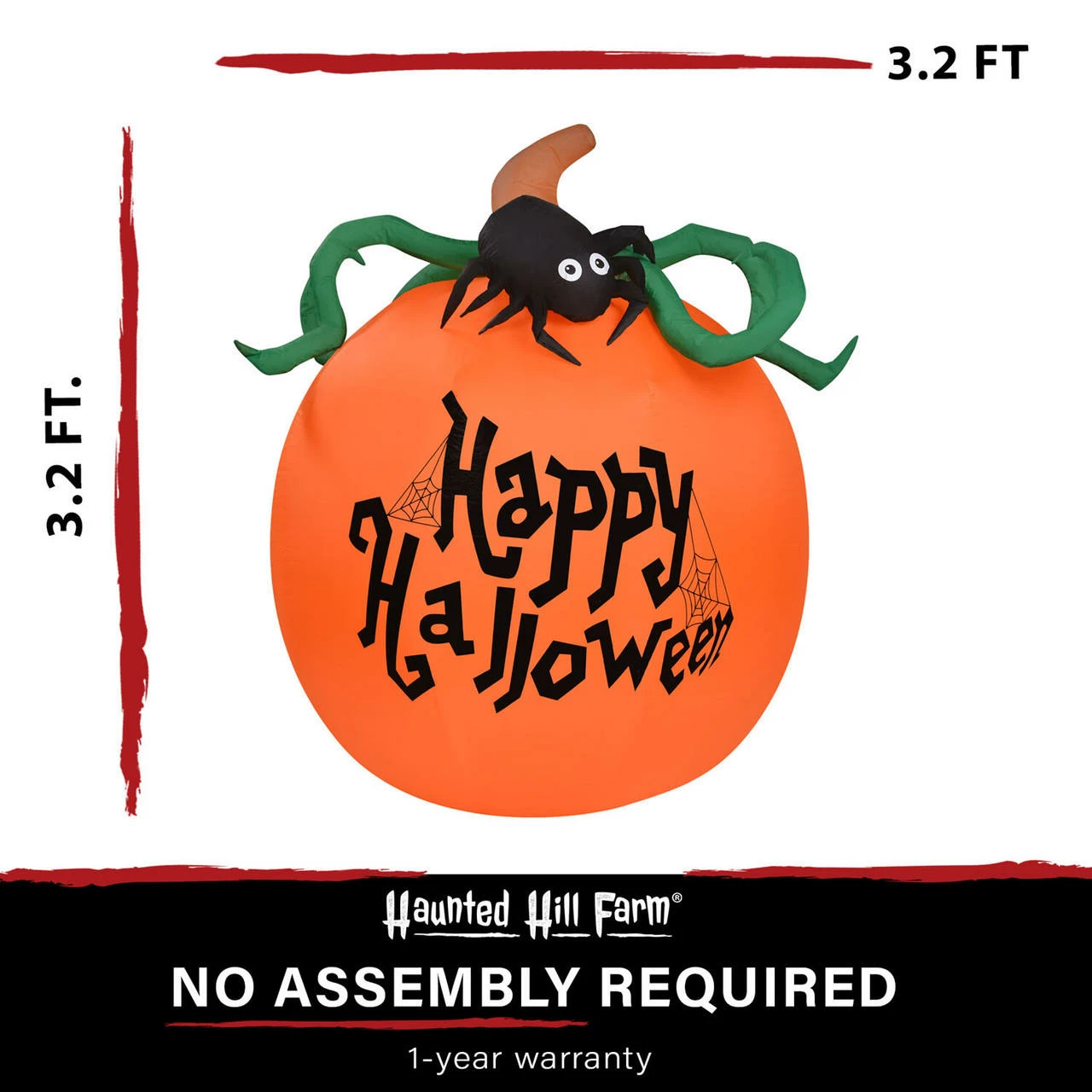 - 3.2-ft. Inflatable Pre-Lit Pumpkin Happy Halloween Sign by Haunted Hill Farm