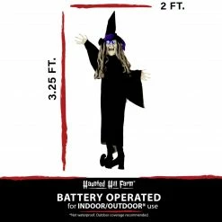 - 3.25-ft. floating witch with hanging loop for indoor and covered outdoor display
