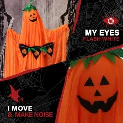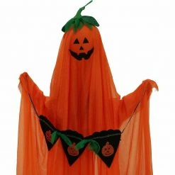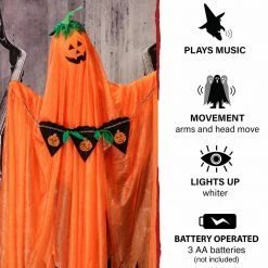 Be afraid. Be very afraid of Haunted Hill Farm’s Lawn of the Dead Collection. These blood curdling creatures are sure to terrify any trick-or-treaters, co-workers, or customers. But not too much! This kid-friendly Halloween ghost is the perfect way to greet trick-or-treaters, party guests, and any other holiday visitors. The 40? spirit wears a welcoming smile and holds a festive pumpkin scroll in his adjustable arms. Stake the bright orange ghost in your yard or set him inside to make your house stand out on the block. Happy Halloween!