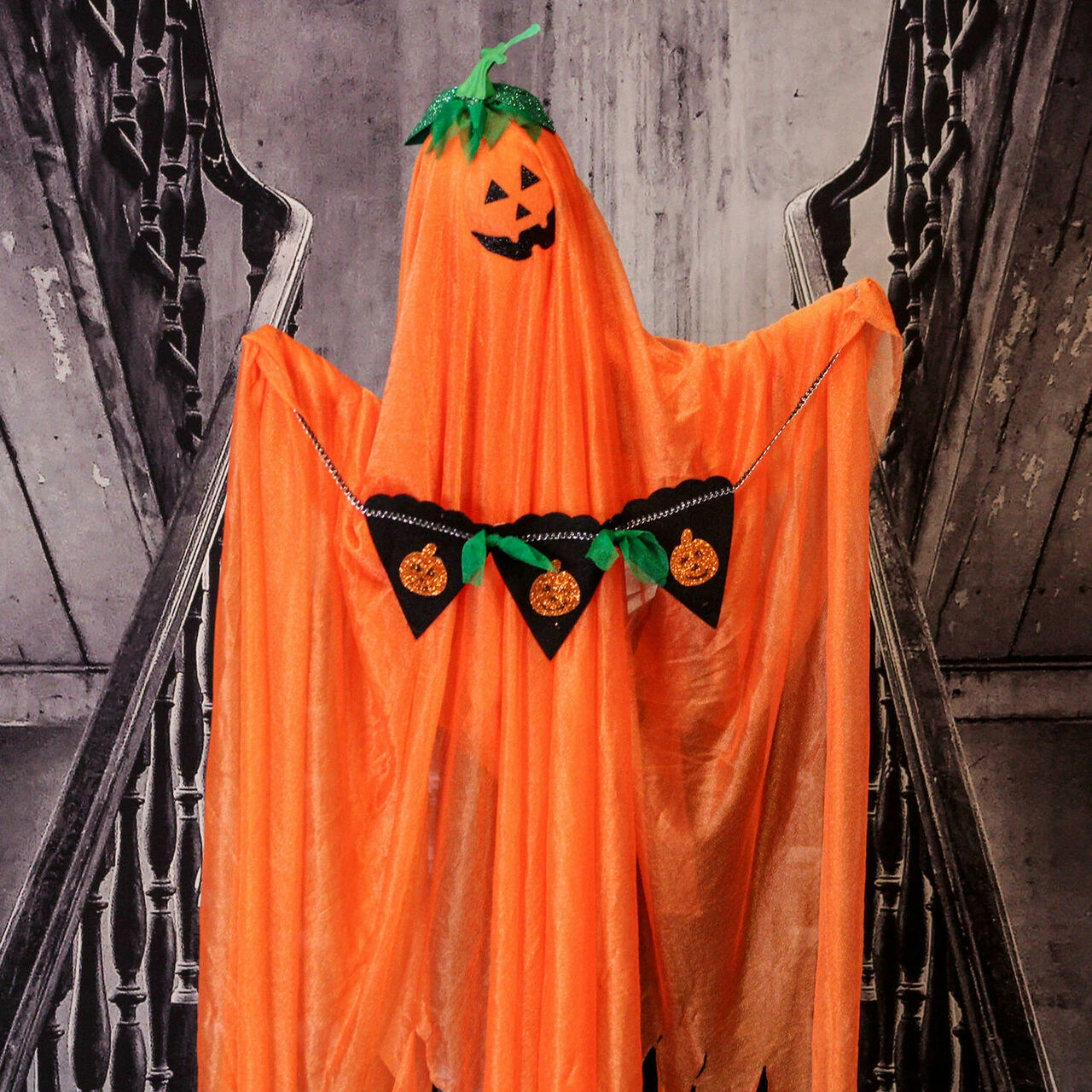 - 3.3-ft. orange ghost with stake and “BOO? scroll for indoor and covered outdoor display